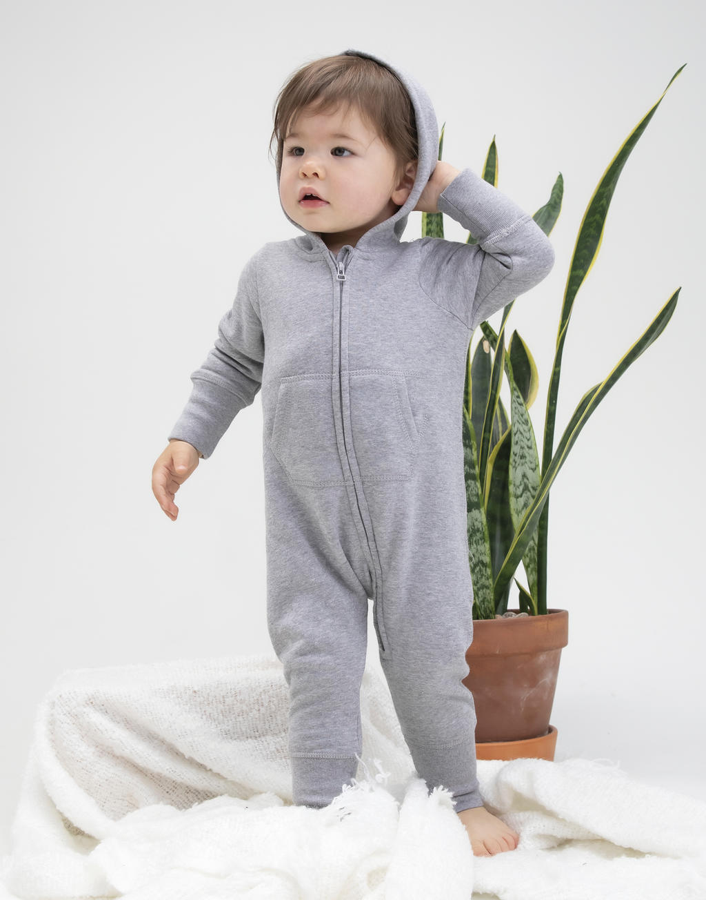 zip s ochranou brady a od krku k nohám pro snadné oblekání, klokaní kapsa, bez švů na zádech, ploché švy