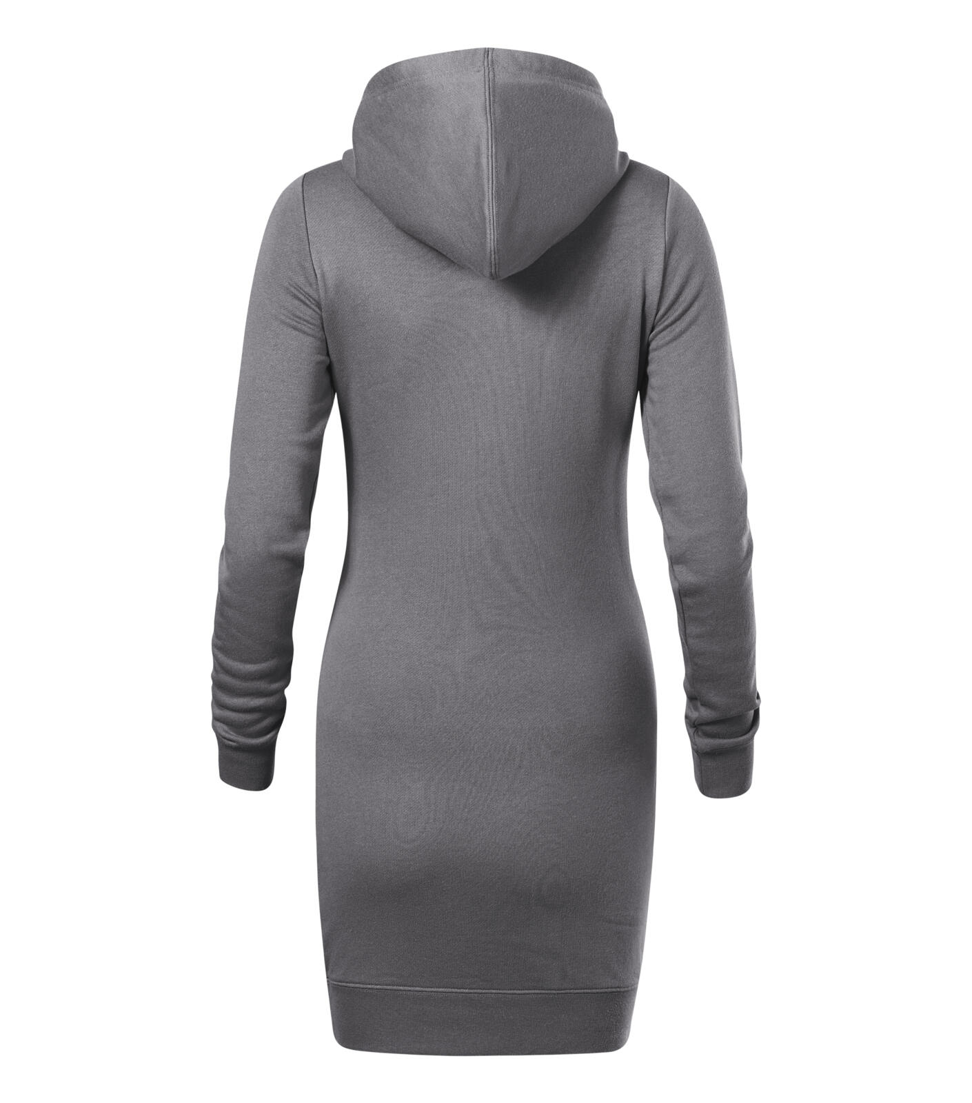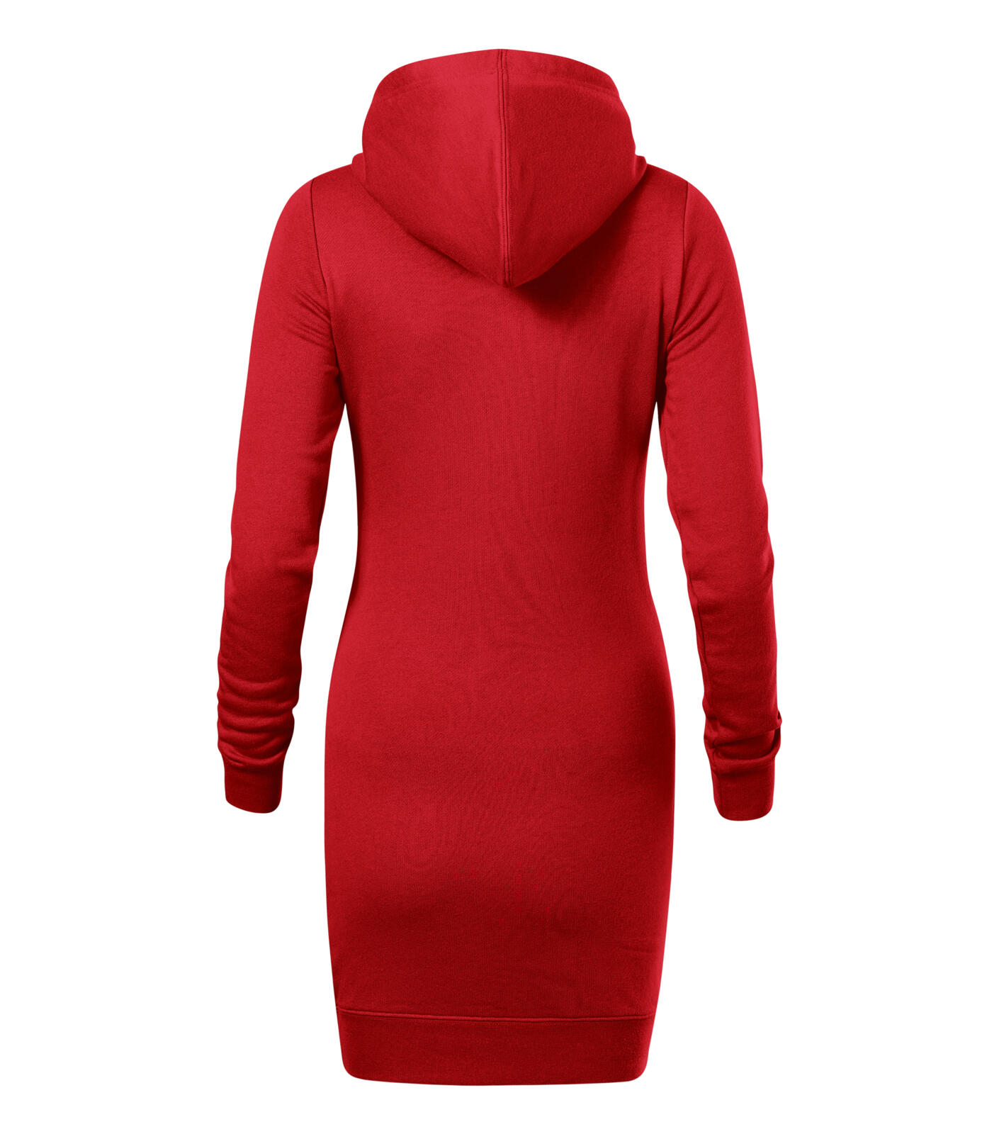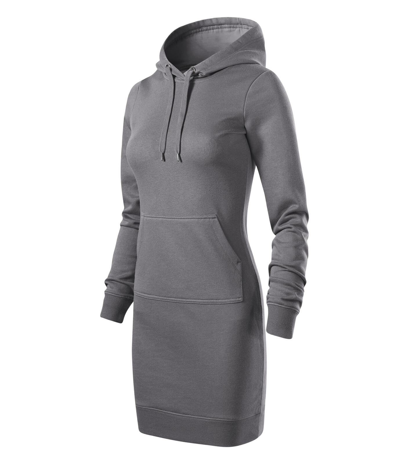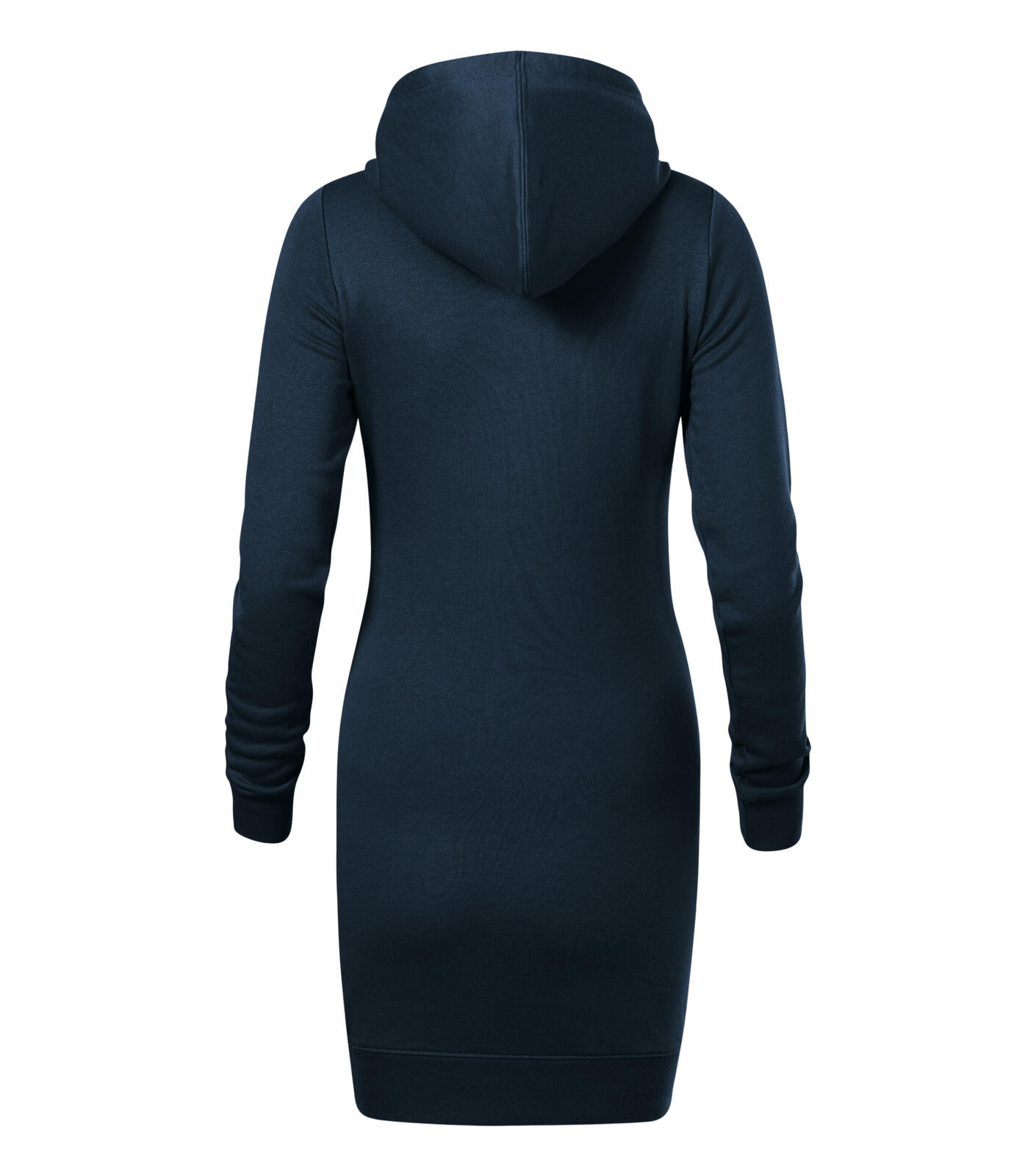 lehce vypasovaný střih s bočními švy, délka nad kolena, nakládaná kapsa ve stylu klokanky