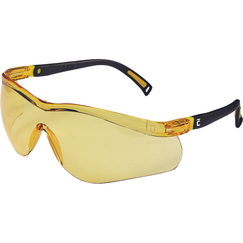 Brýle sportovního vzhledu optické třídy 1 se žlutým polykarbonátovým zorníkem s ochranným filtrem proti UV záření (dle normy EN 170), úpravou proti poškrábání a orosení (třídy F dle normy EN 166), ochranou proti malému nárazu a nastavitelným úhlem a delkou stranic.