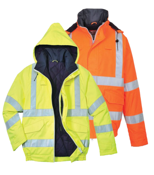 Bunda bomber Bizflame Rain HiVis Antistatic FR - Tanto plně nepromokavá bunda nabízí ochranu proti více rizikům v nebezpečných podmínkách. Chemická odolnost a odnímatelná kapuce. Vyhovuje pro železniční průmysl.