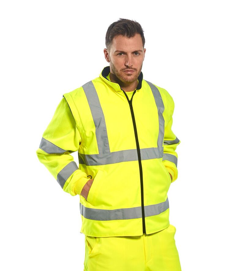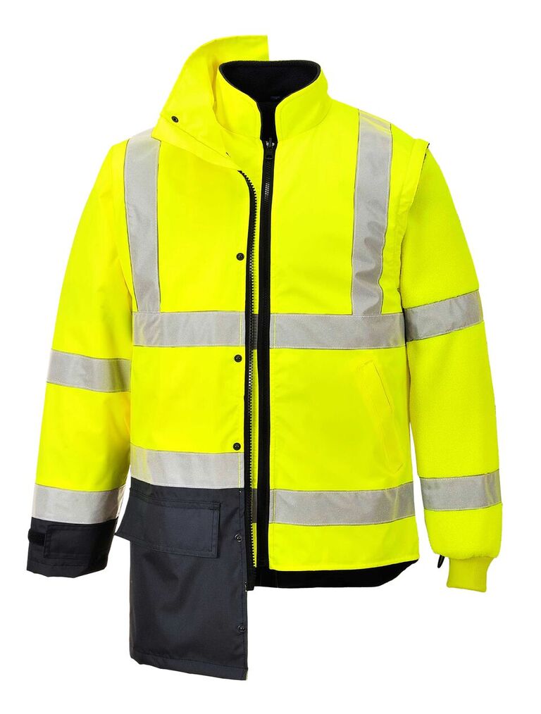 Všestranné použití. Bunda obsahuje dvě velké kapsy na suchý zip, skrytou kapuci, vnitřní bundu s odepínacími rukávy. Dvě prostorné boční kapsy. Certifikace EN ISO 20471 třída 3.