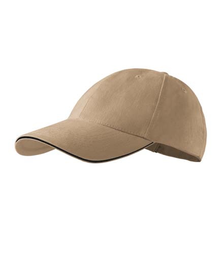 Šestipanelová čepice z těžké broušené bavlny s obšívanými dírkami a prohnutým kšiltem.