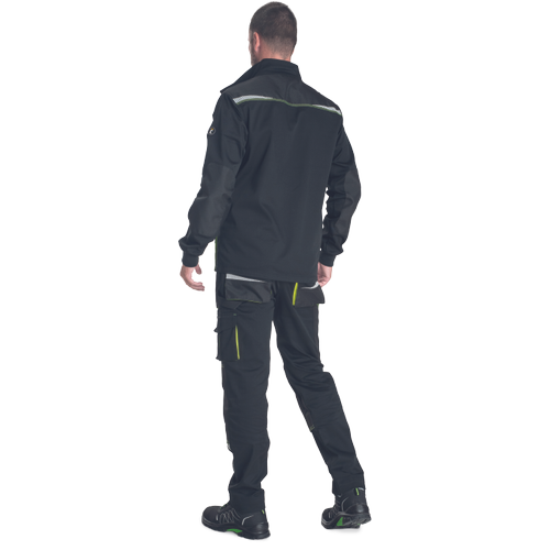 • pánská vysoce odolná strečová pracovní bunda • přední zapínání na zip kryté légou • 2 boční kapsy • 2 náprsní kapsy, jedna na mobilní telefon • Oxford 600D zesílení v oblasti ramen a loktů • tištěné reflexní segmentové detaily • pletené elastické manžety rukávů