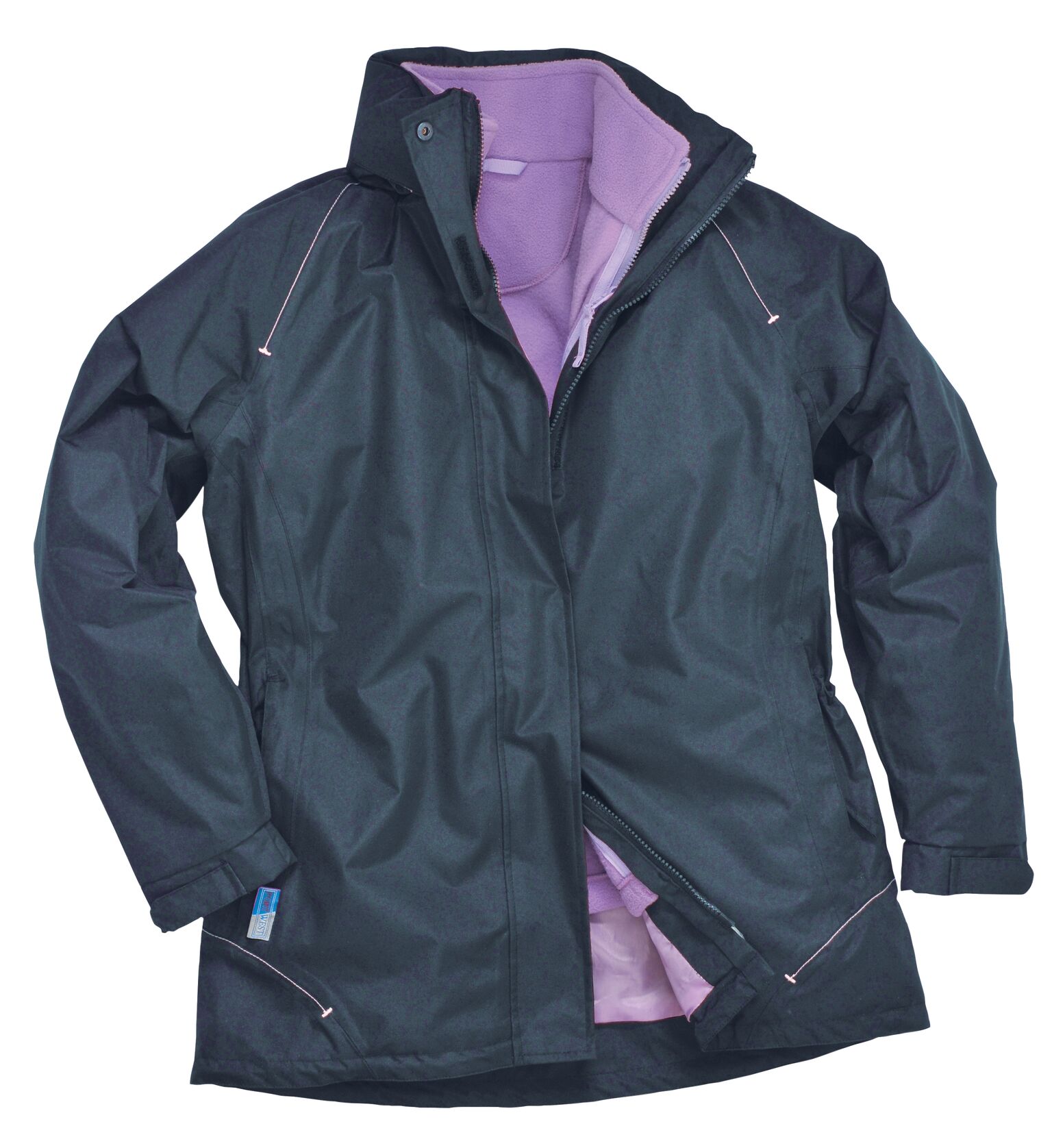 Dámská bunda s klasickým střihem, pohodlná při nošení, vhodná pro všechny příležitosti. Prodloužený zadní panel, nastavitelná velikost v pase, dámský střih, který tvaruje postavu.