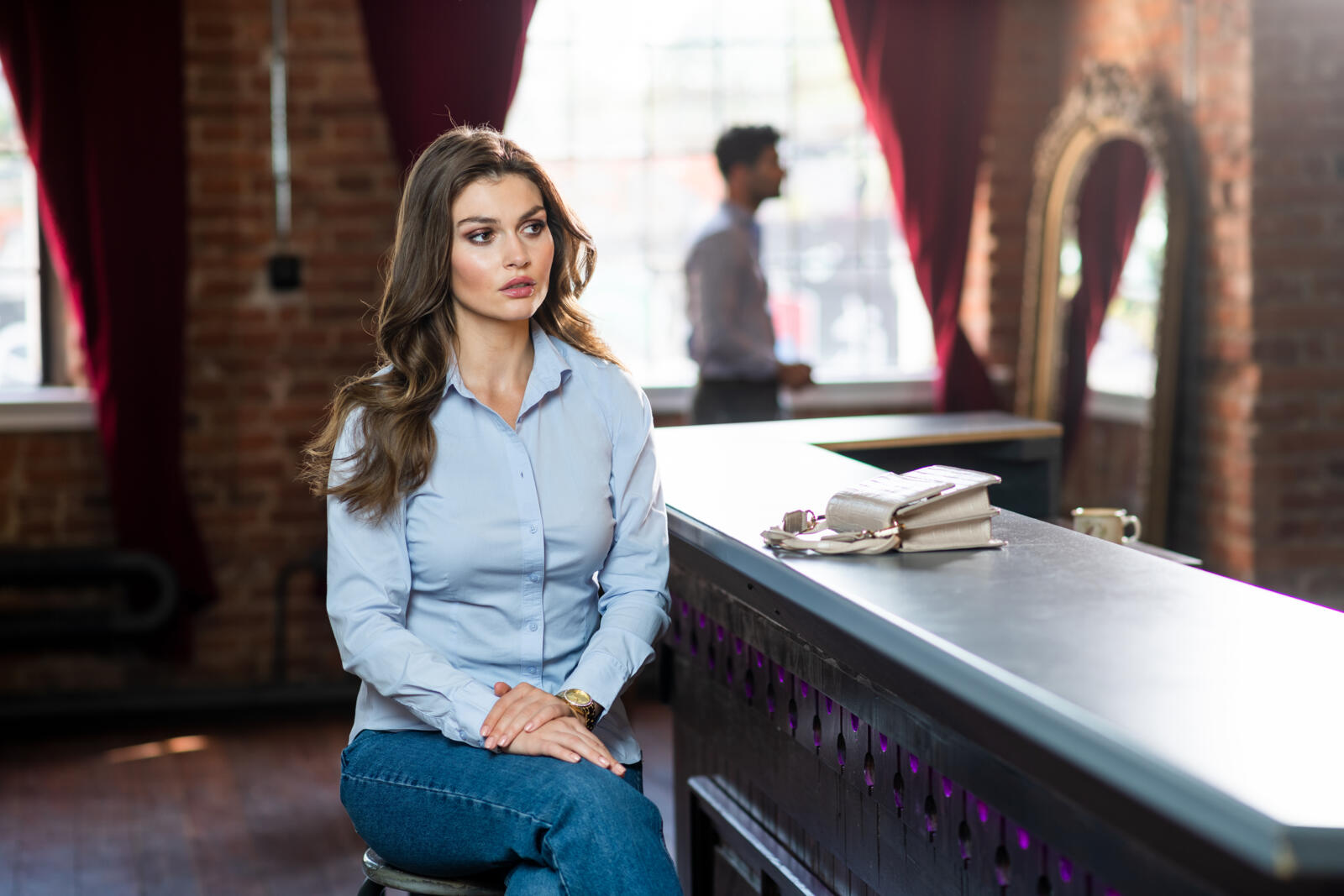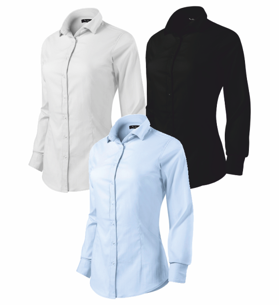 Dámská košile s dlouhým rukávem. Perleťové knoflíky v barvě vrchového materiálu.
