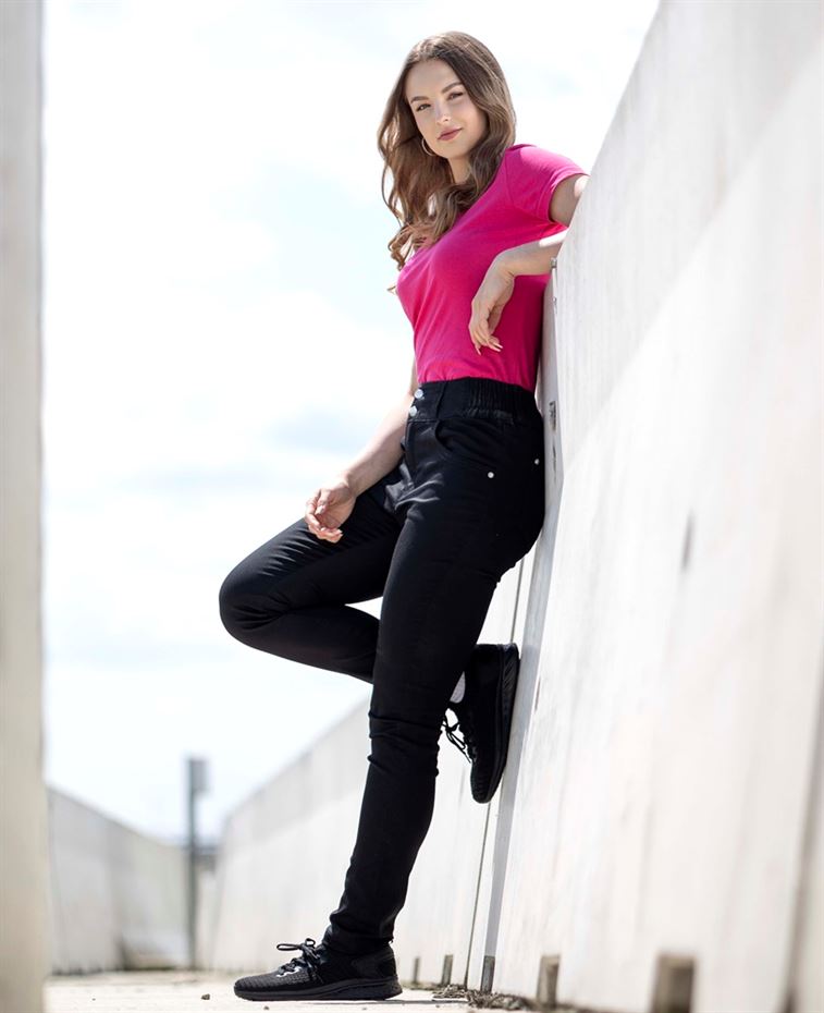 - exkluzivní dámské elastické kalhoty se zvýšeným pasem vyvinuté speciálně pro ženy