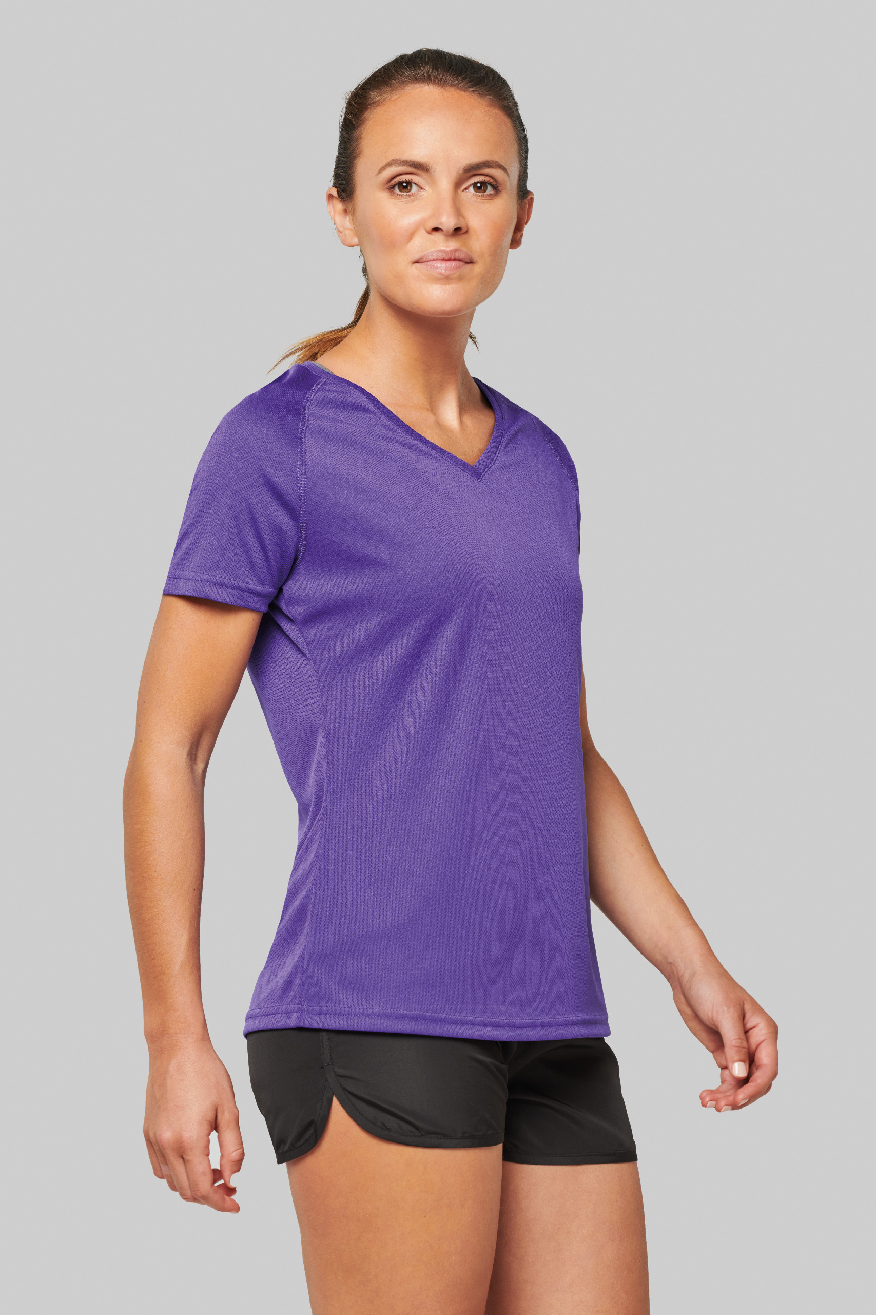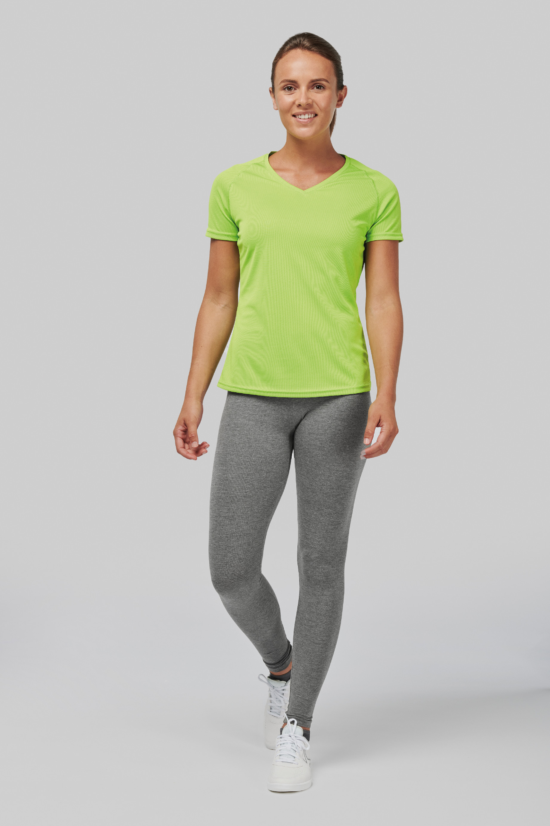 raglánový rukáv se skrytými švy, dvojité švy na rukávech a lemu, malý výstřih do V, krční lemovka