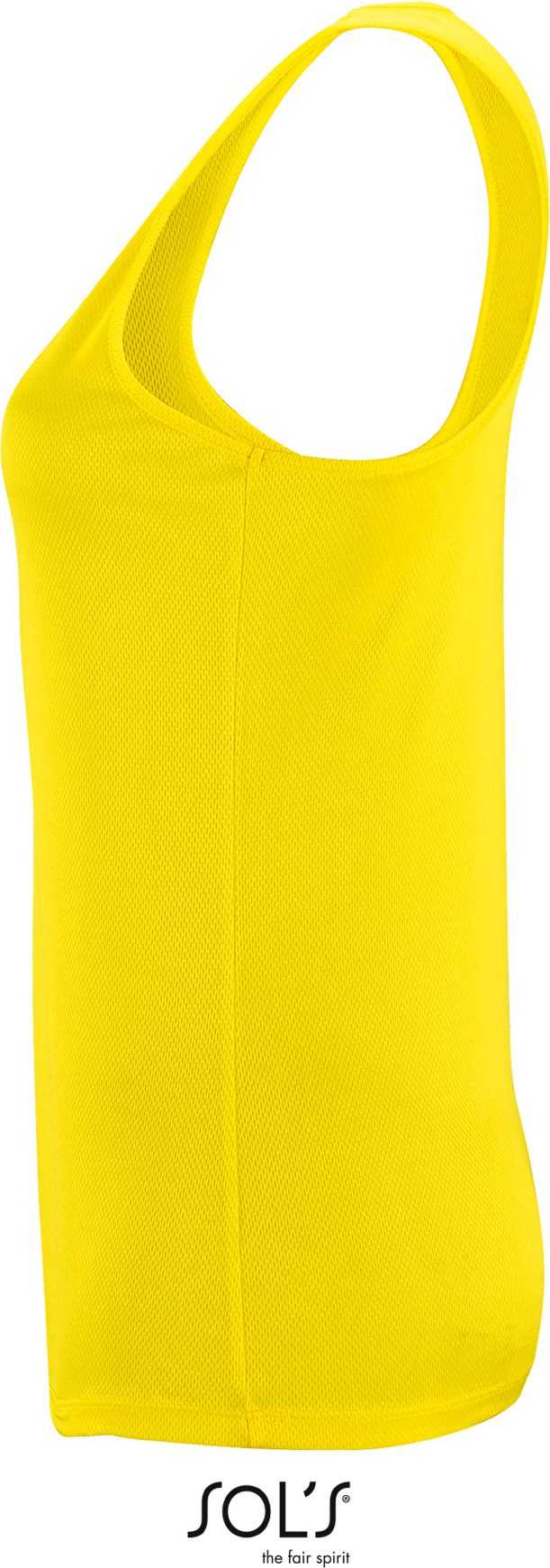 rychleschnoucí prodyšný materiál, úzce lemovaný žebrovaný výstřih s jednoduchým prošíváním, vykrojená záda