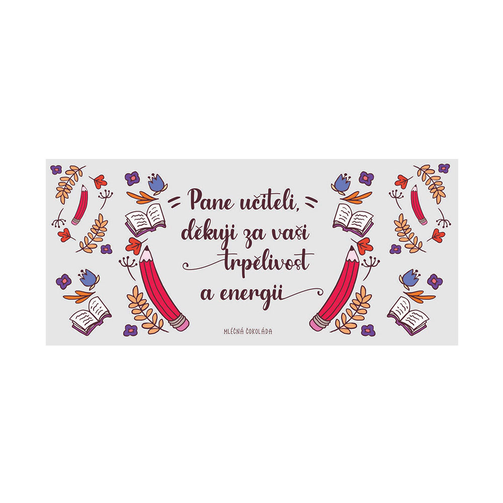 Dárková mléčná čokoláda Dárková mléčná čokoláda 100 g – Děkuji pane učiteli. Originální dárek pro pana učitele, kterou můžete darovat na konci školního roku při vysvědčení nebo ke dni učitelů.