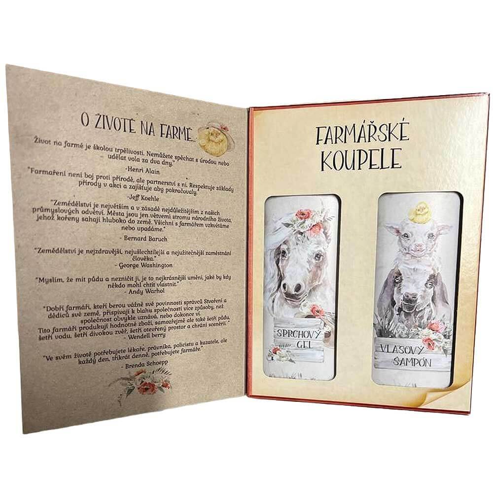 Kosmetická sada pro všechny farmáře, pracovníky v zemědělství, milovníky venkova a domácích zvířat. Originální kosmetický dárek k narozeninám nebo svátku. Po odklopení přední strany balíčku si můžete přečíst několik citátů o životě na farmě.