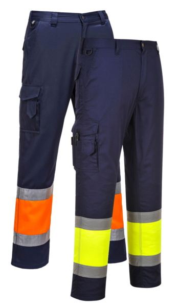 Dvoubarevné kalhoty Combat Hi-Vis - plně certifikované kalhoty s celou řadou výhodných vlastností. Převážně tmavá modrá barva zajišťuje, že vaše kalhoty vypadají skvěle a delší dobu se udrží v čistotě.