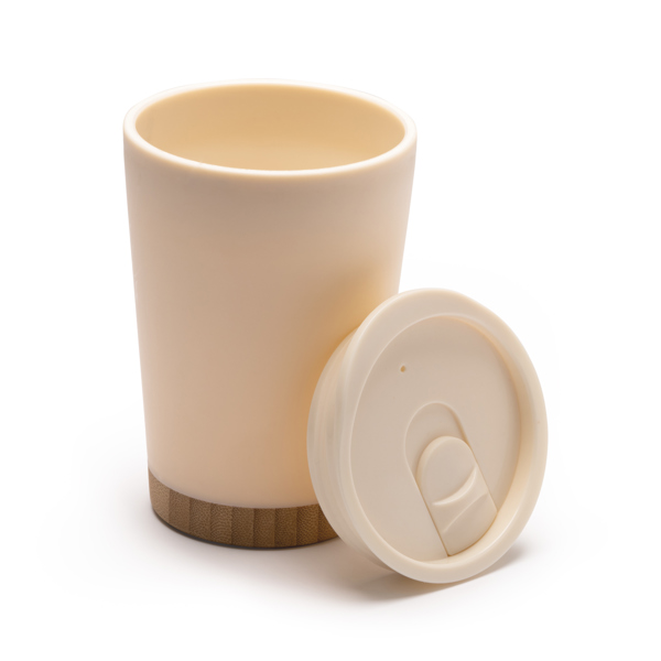 Dvoustěnný hrnek s tělem z recyklovaného PP a se základnou z bambusu. Součástí je odměřovací víčko. Objem: 290 ml. Baleno v ekologické designové krabičce.