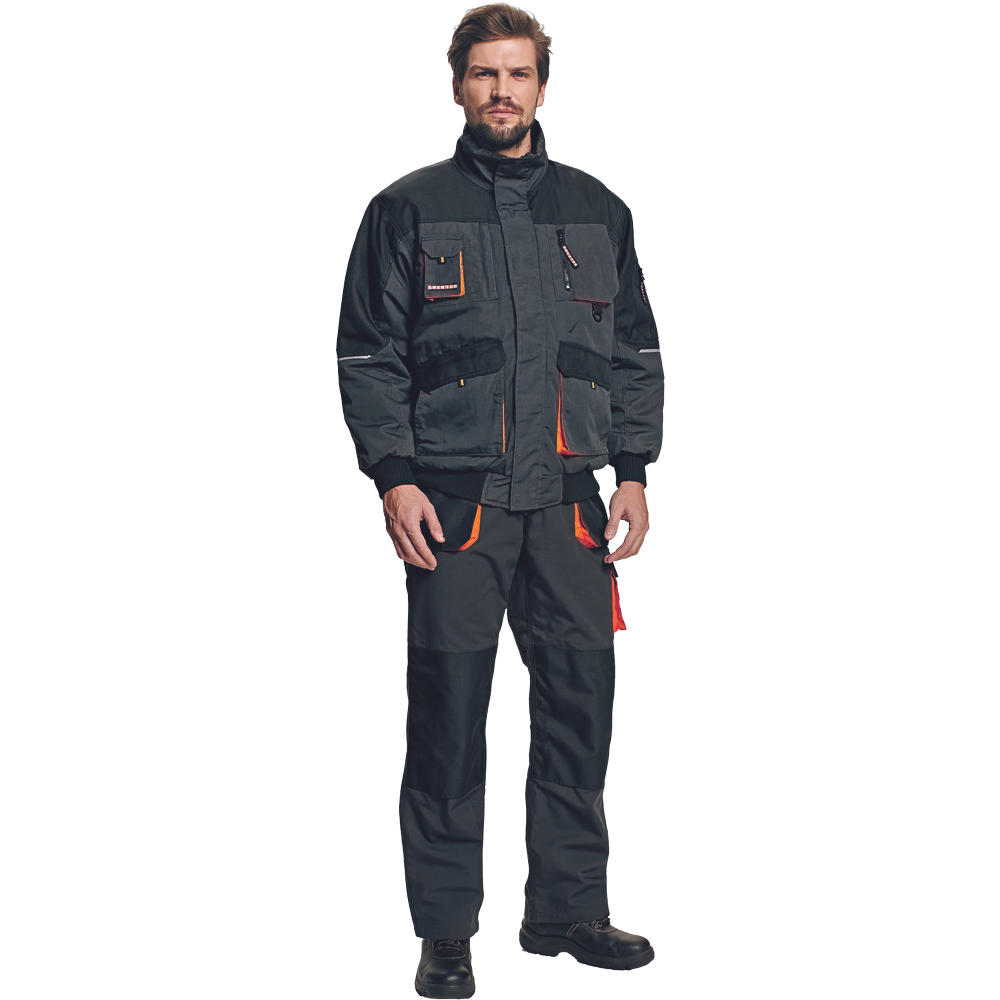 Kvalitní pracovní monterková bunda, moderní střih, vkusně barevně kombinována a vyztužení v ramenou, zapínání na zip a límeček na suchý zip. Rukávy jsou zakončeny stahovacím lemem.