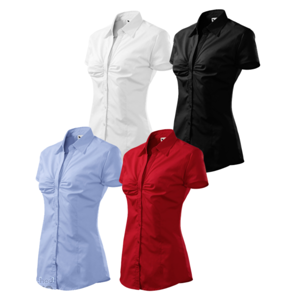 Dámská halenka s krátkým rukávem z jemného materiálu. S rozhalenkou a dvoudílným košilovým límcem.