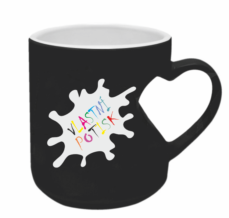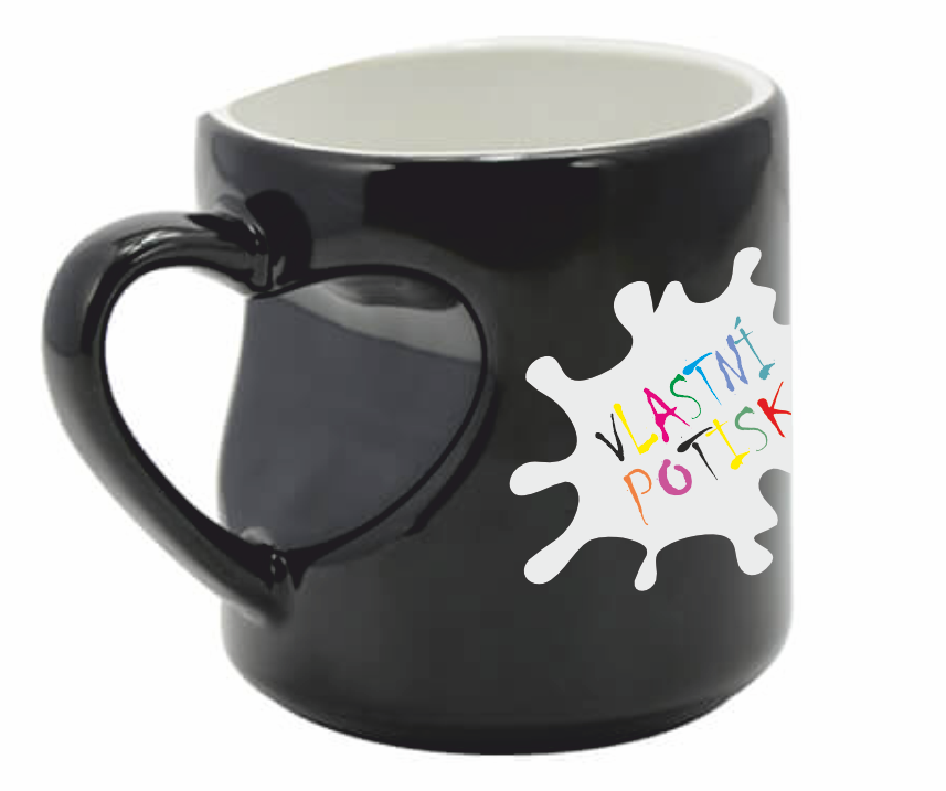 Magický černý keramický hrneko objemu cca 300 ml, potisk vlastním obrázkem nebo fotografií, vhodný dárek k Valentýnu. Po nalití teplého nápoje zbělá a odkryje obrázek.