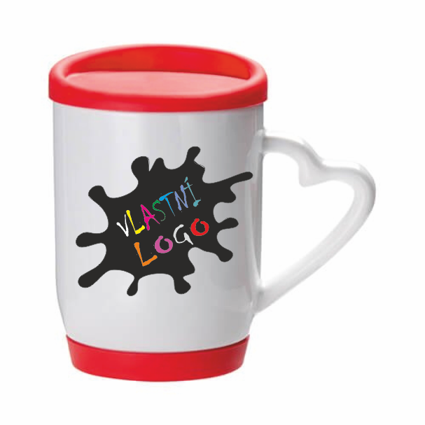 Bílý hrnek s uchem ve tvaru srdce a vlastním potiskem