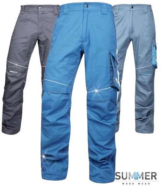 Reflexní prvky pro zvýšenou viditelnost a bezpečnost, reverzní zipy pro snadnou manipulaci a prostor pro nákoleníky pro další ochranu. Vyrobena z odolné směsi polyesteru a bavlny, ideální pro použití v teplém prostředí.