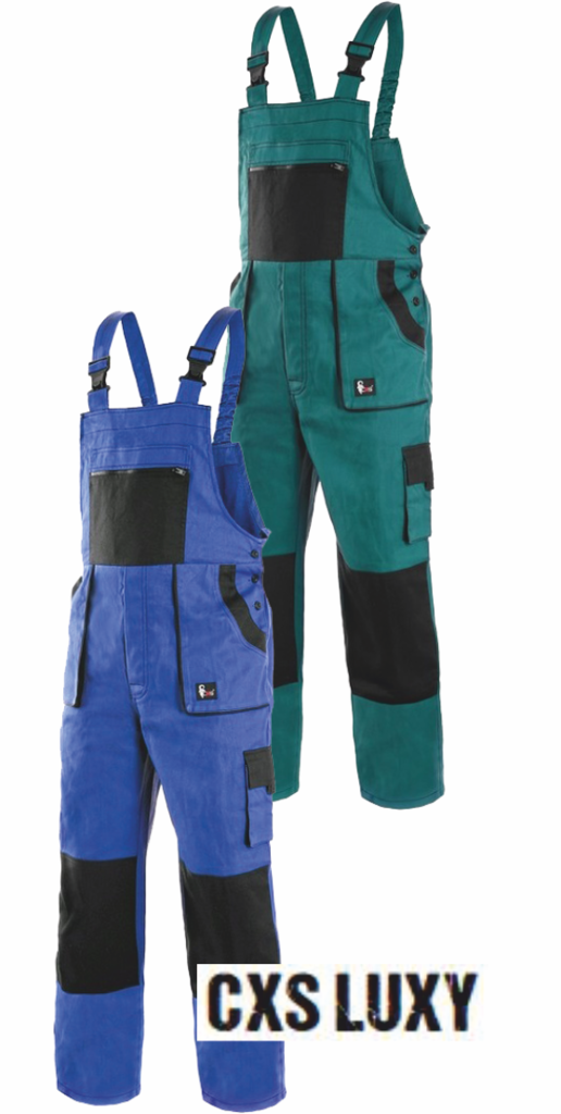 Kalhoty s laclem LUX, pohodlné pracovní kalhoty s laclem, zdvojená látka a prošívání sedu, zajímavé střihové provedení kapes a laclu, zesílená kolena, dvě zadní kapsy. prodložené na výšku 194 cm