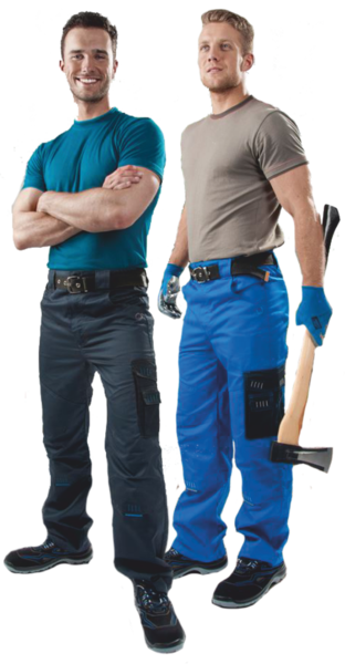 Kvalitní směsový materiál polyesteru s příměsí bavlny s vysokou gramáží látky zajišťuje vysokou odolnost proti mechanickému poškození při práci. Zároveň je materiál v partiích kolen, které snáze podléhají ošoupání a oděru, zdvojený, a pracovník se tak nemusí stresovat poškozením kalhot při práci vkleče. Navíc oblast kolen s anatomicky tvarovanými záševky disponují možností vkládání nákoleníků do našitých kapes pro ještě vyšší ochranu.