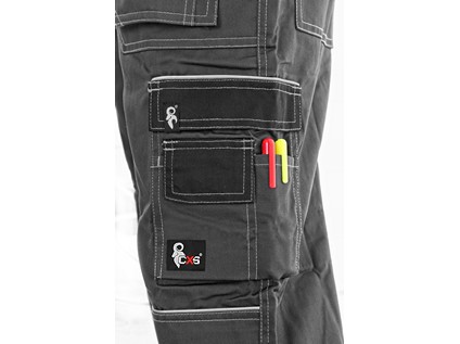 Pánské kalhoty do pasu - zkrácená varianta na výšku 170-176 cm, poutka na opasek, zdvojená kolena s možností vložení kolenních výztuh, boční multifunkční kapsy, přední kapsy, poutka na nářadí, reflexní doplňky.