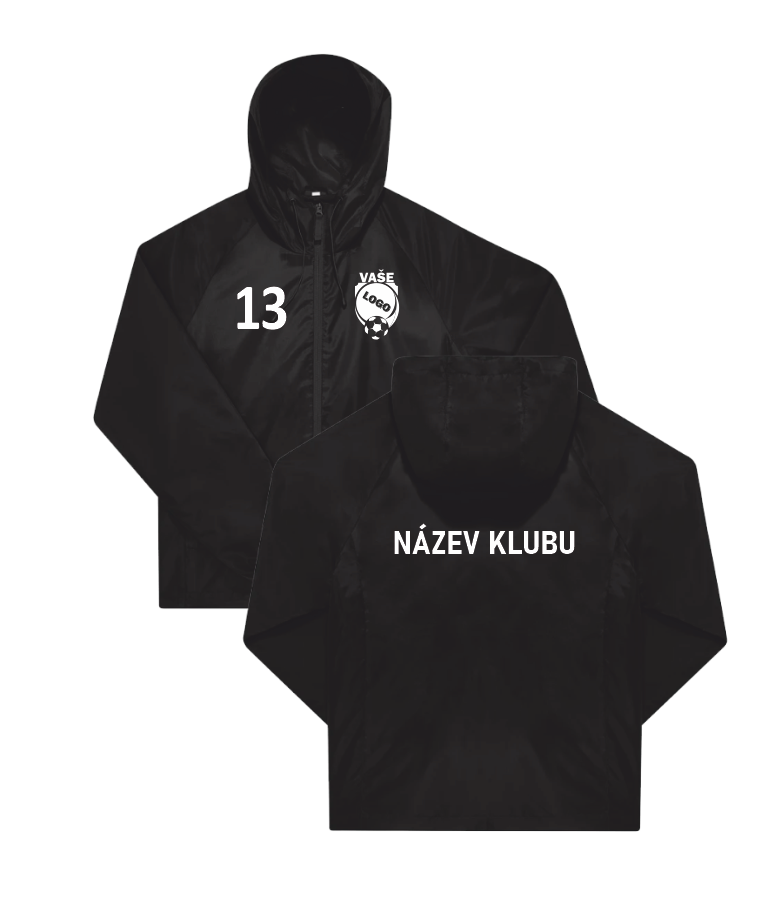 Stylová unisexová klubová větrovka s potiskem v ceně. Lehká, větruodolná, sbalitelná do vlastní kapsy, ideální pro sportovní a týmové aktivity.