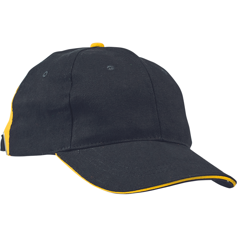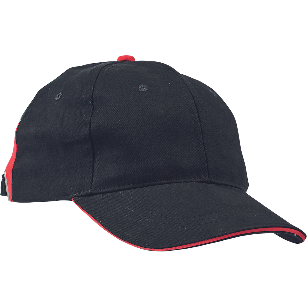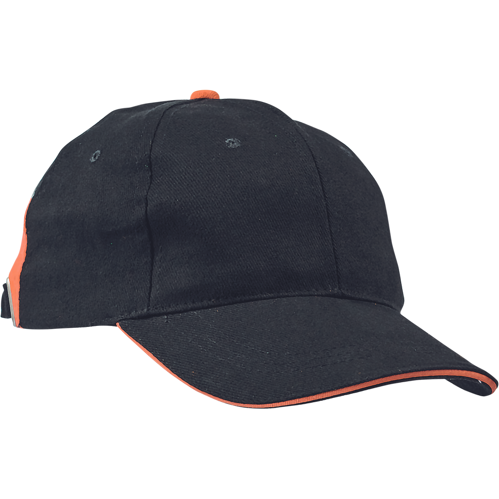 6-ti panelová kšiltovka z počesané bavlny s kontrastním dílem lemovaným reflexní paspulkou; nastavení velikosti pomocí kovové spony; v barevné kombinaci Knoxfield.