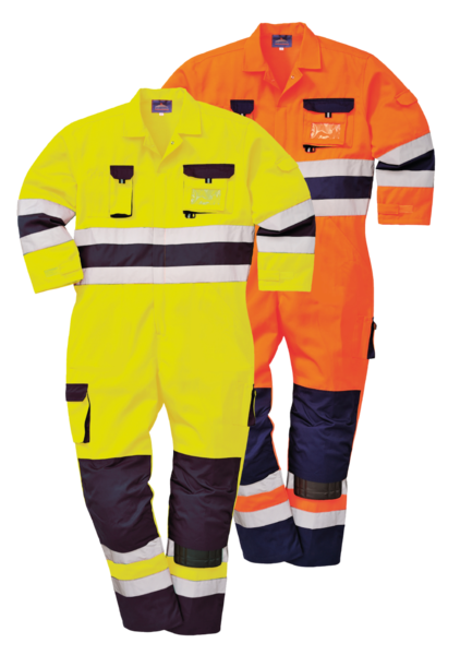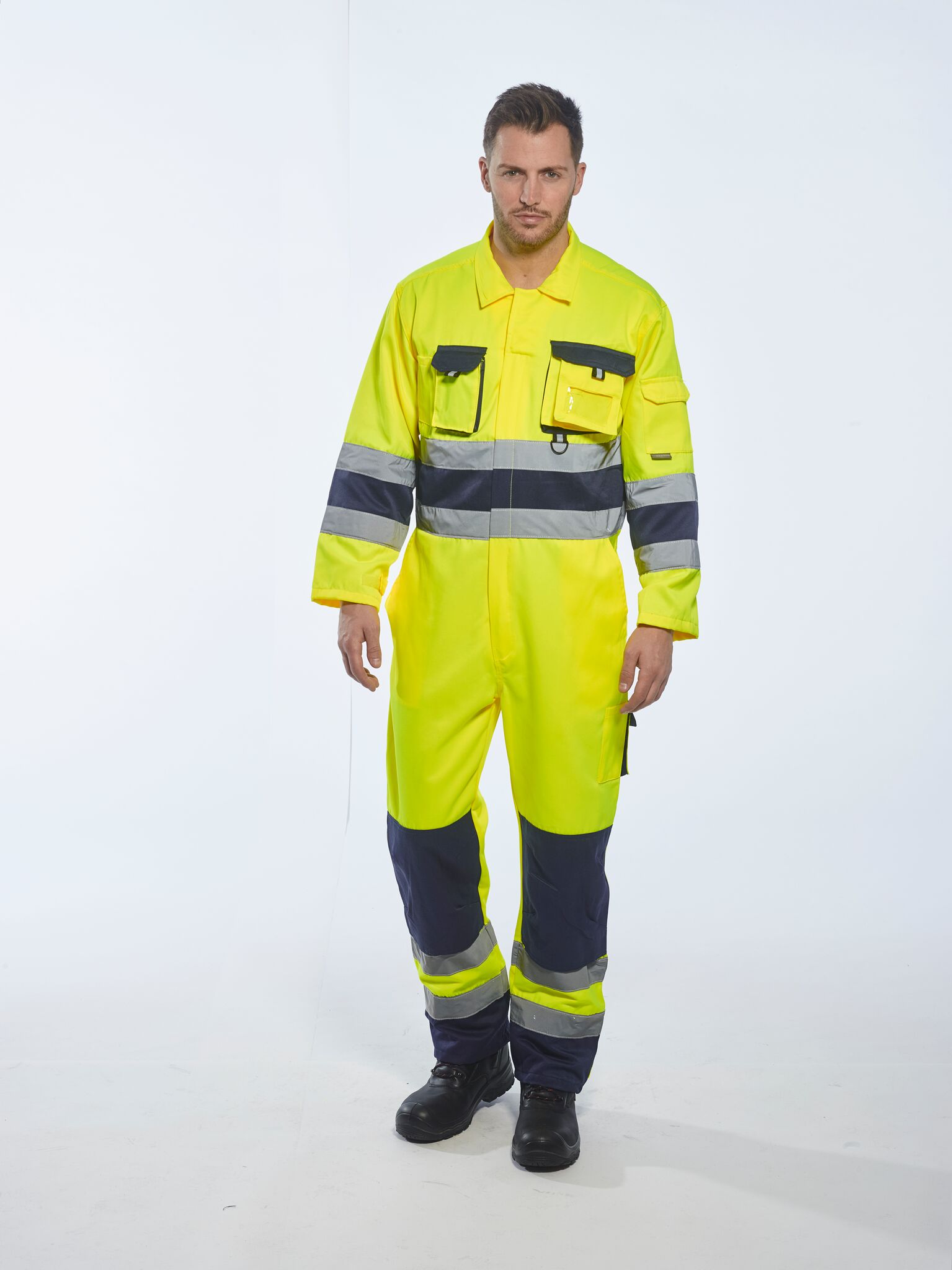 Kombinéza Nantes Hi-Vis - tato stylová kombinéza nabízí kompletní certifikovanou ochranu pro každého, kdo pracuje v blízkosti dálnic nebo silnic. K užitečným funkcím patří kapsy na kolenní vložky a zadní elastická část pro volnějš