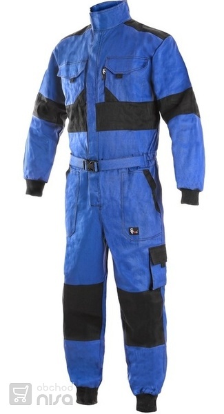 Pánská montérková kombinéza, zateplená výplní z dutého vlákna, kryté zapínání na zip a suché zipy, dvoucestný zip, rukávy s pružnou manžetou, náprsní kapsy s klopami, skrytá náprsní kapsa na zip, pásek se sponou na stažení pasu, přední kapsy, boční kapsa na svinovací / skládací metr, boční kapsa na mobil / peněženku, zdvojená kolena, pruženka v bederní části, zadní kapsa s klopou, reflexní doplňky.