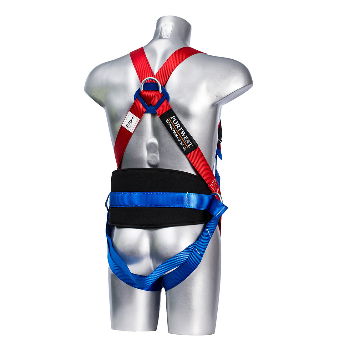 Ergonomický postroj s posuvným hřbetním D-kroužkem. Má dvě smyčky na hrudi, prodyšný tvarovaný polštářek, dvě boční D-kroužky a ploché přezky, které se snadno používají a jsou bezpečné proti selhání. Vyrobeno z polyesterových popruhů p