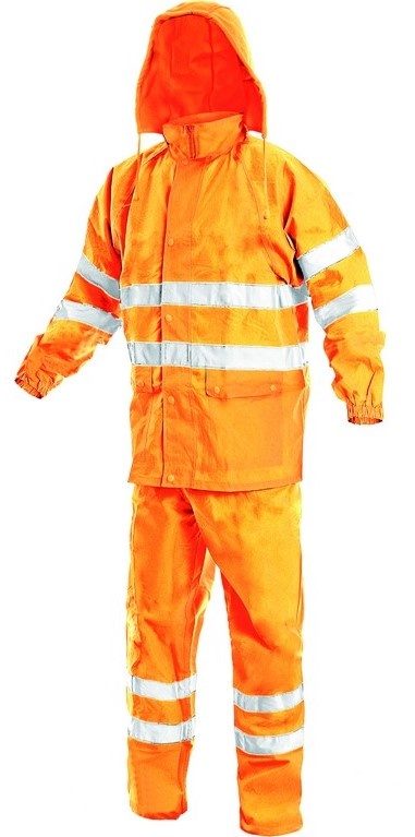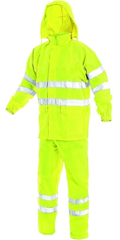 Výstražný, nepromokavý, lepené švy, bunda s odepínací kapucí, kalhoty v  pase do gumy
