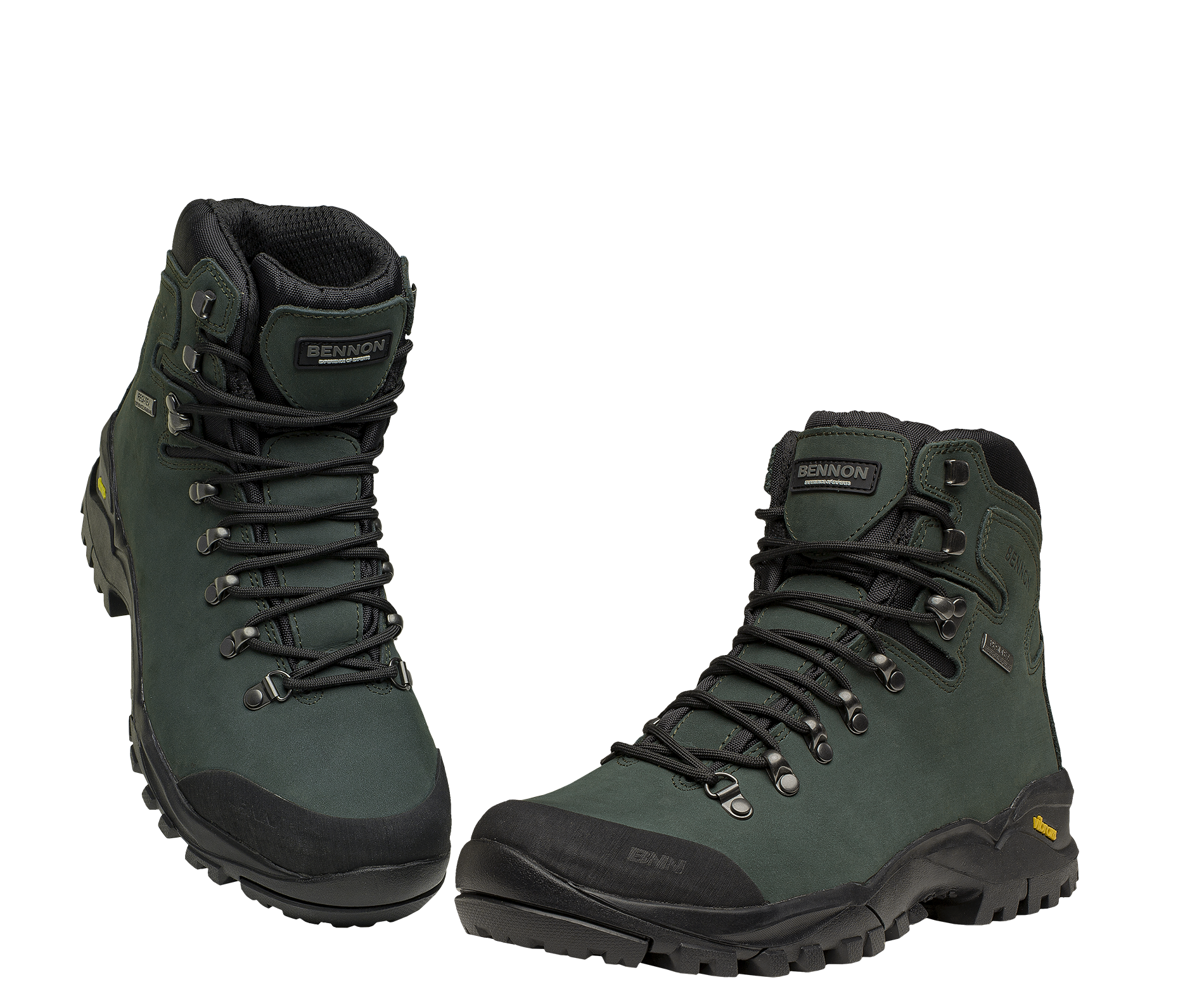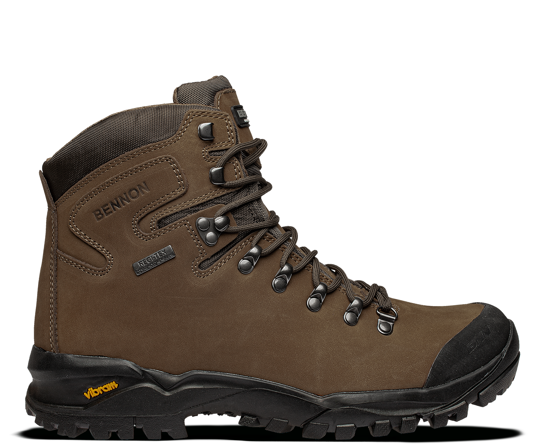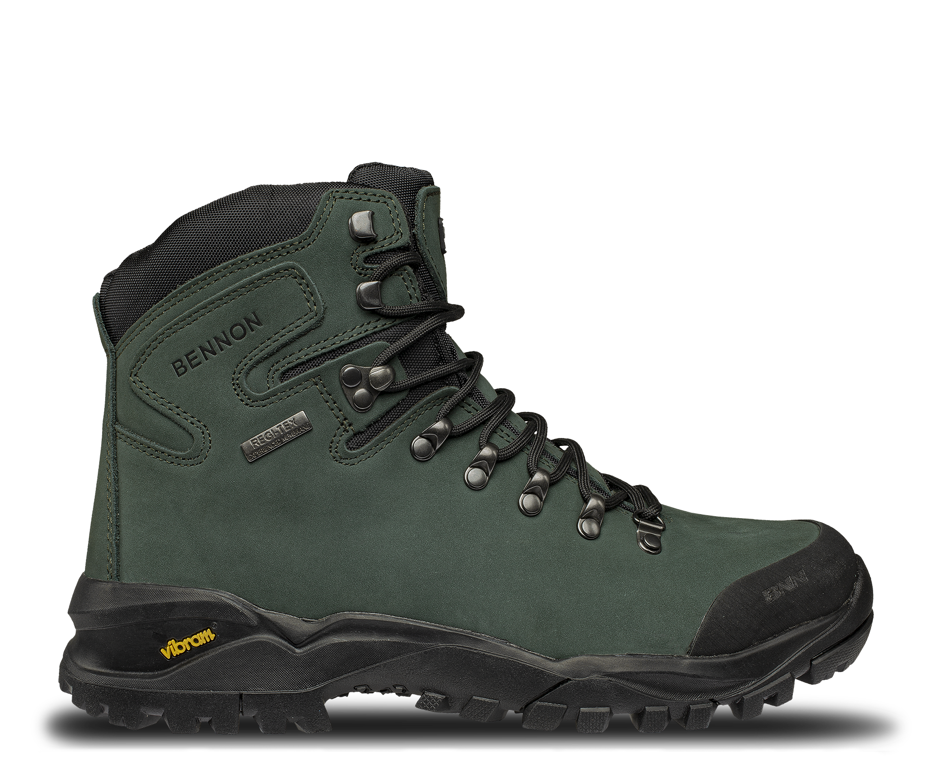 BENNON® TREK - Vyšší celokožená trekingová obuv s pohodlným systémem rychlého šněrování vybavená voděodolnou membránou REGI-TEX® a celopryžovou podešví Vibram®.