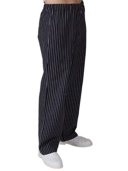 Pánské  kuchařské kalhoty  se sníženým pasem. Pásek s pruženkou a tkanicí. Boční nakládané kapsy, Bez rozparku.Tabulka velikosti ve spodní části karty produktu.