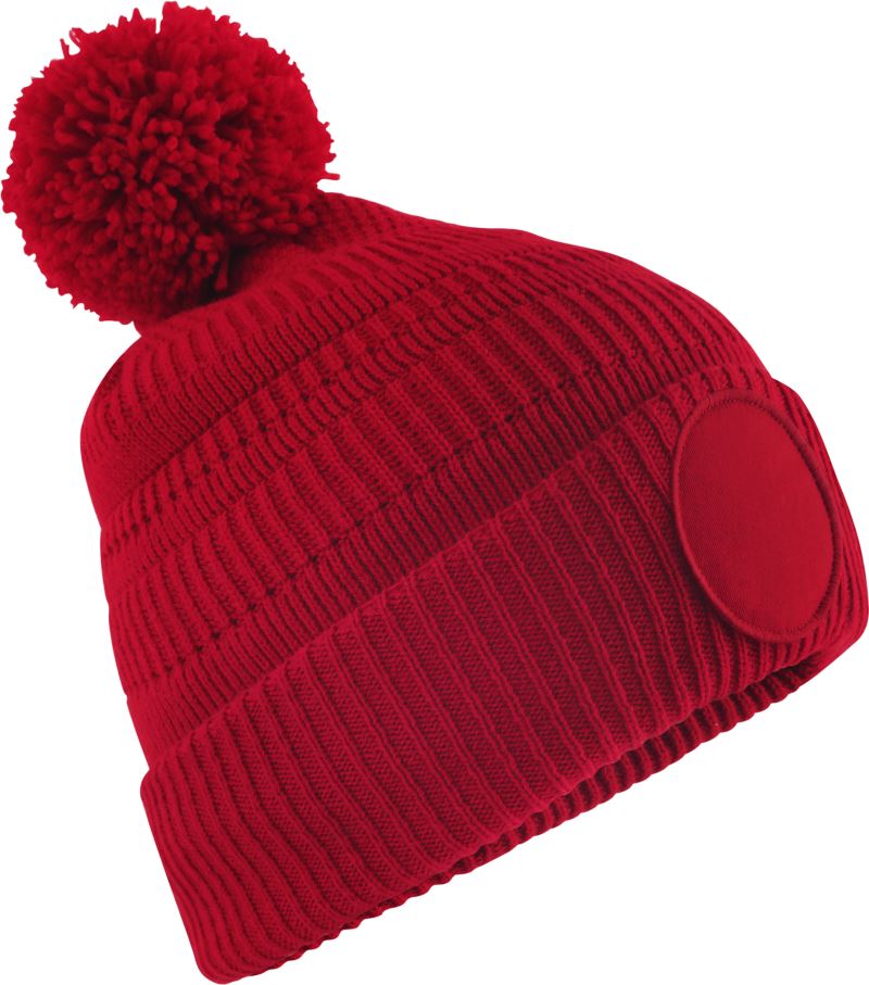 zimní čepice s vlastním potiskem z recyklovaného polyesteru s bambulí a mikrofleecovou podšívkou