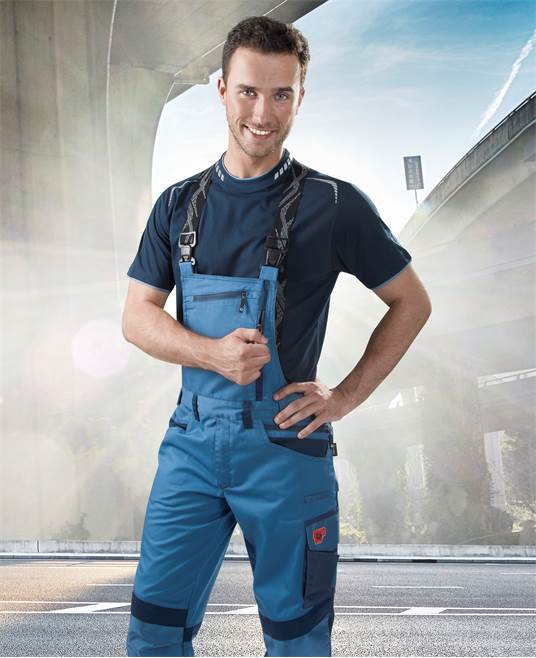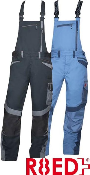 Montérkové kalhoty s laclem z prémiové kolekce R8ED+® jsou kvalitními a designovými pracovními kalhotami vyrobenými s důrazem na detail. Množství funkčních kapes ulehčuje mobilitu při práci a zároveň usnadňuje organizaci vybavení a bezpečné uložení i například mobilního telefonu do speciální kapsy na levém stehně. V zadní části kalhot se nachází speciální kapsa na uložení pera nebo tužky, dále kalhoty disponují speciální kapsou na skládací metr a dvěma kapsami uzavíratelnými na zip a umístěnými na laclu.