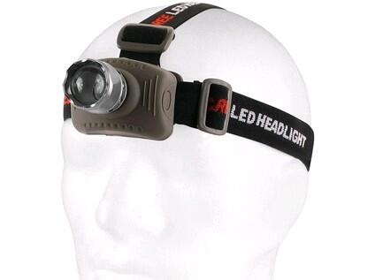 Čelová svítilna, světelný tok 120 lm, zdroj světla: 3W LED měnitelný fokus, možnost přepínání: 50 % - 100 % svícení + režim blikání, napájení 3xAAA (baterie nejsou součástí balení), doba svícení: až 42 hodin.