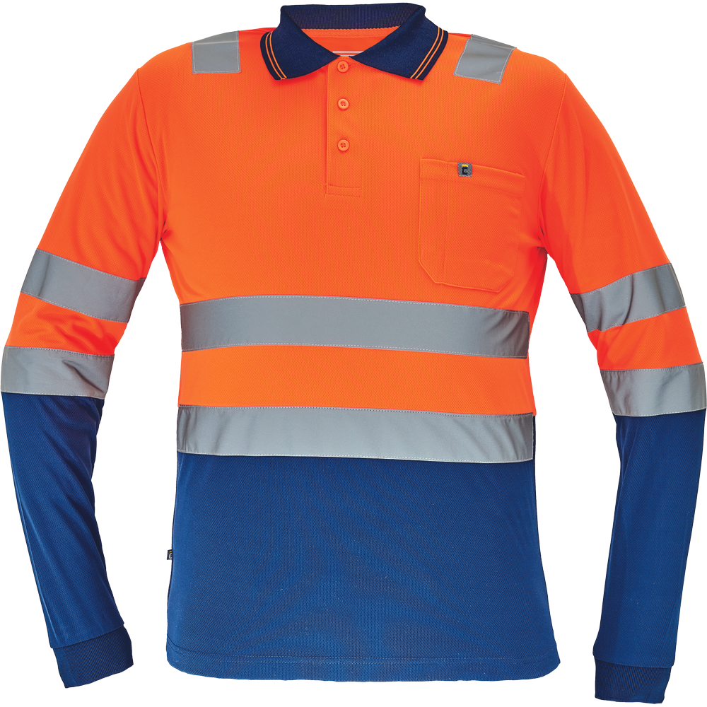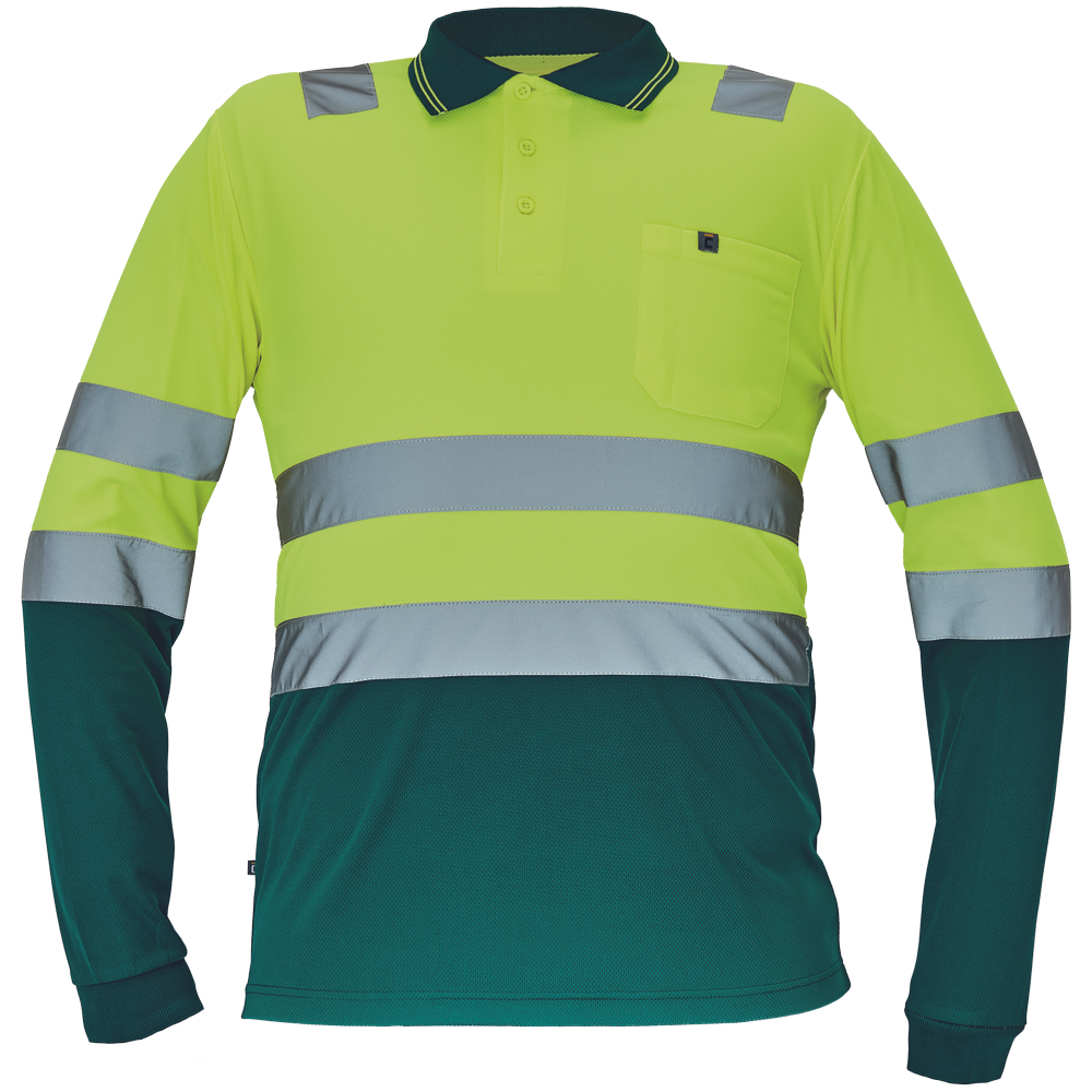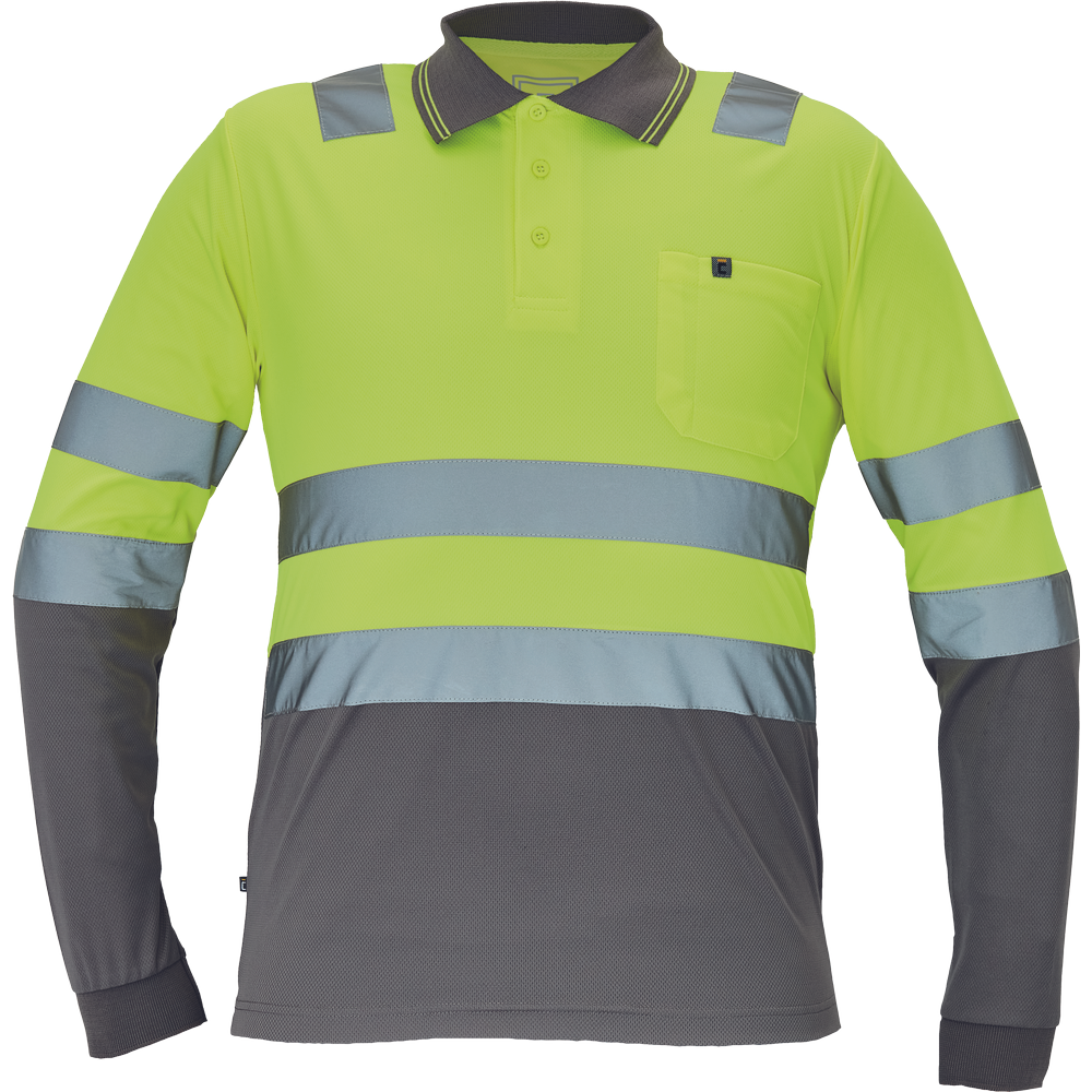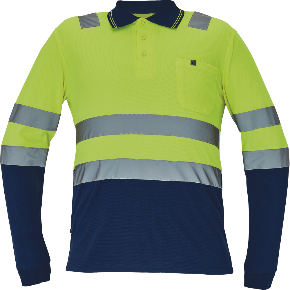 Pánská HI-VIS polokošile s dlouhým rukávem; reflexní pruhy přes ramena a v bocích; zapínání na 3 knoflíky.