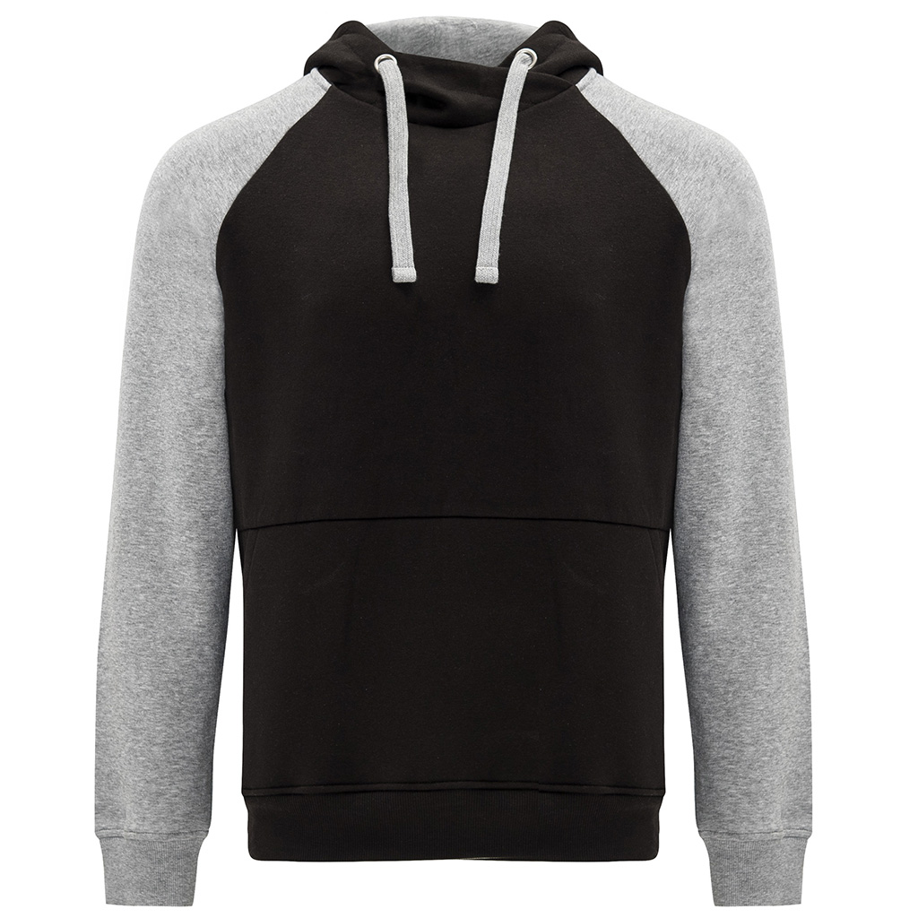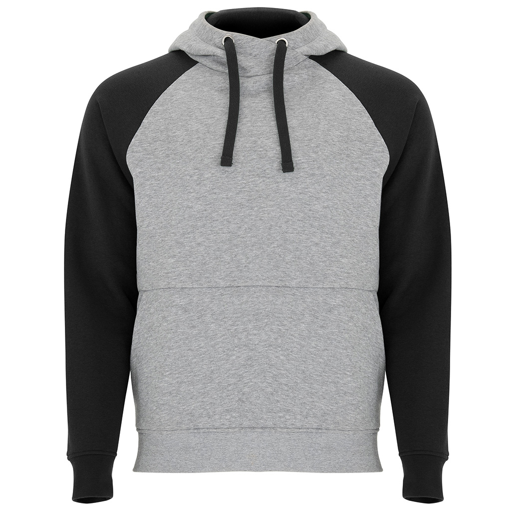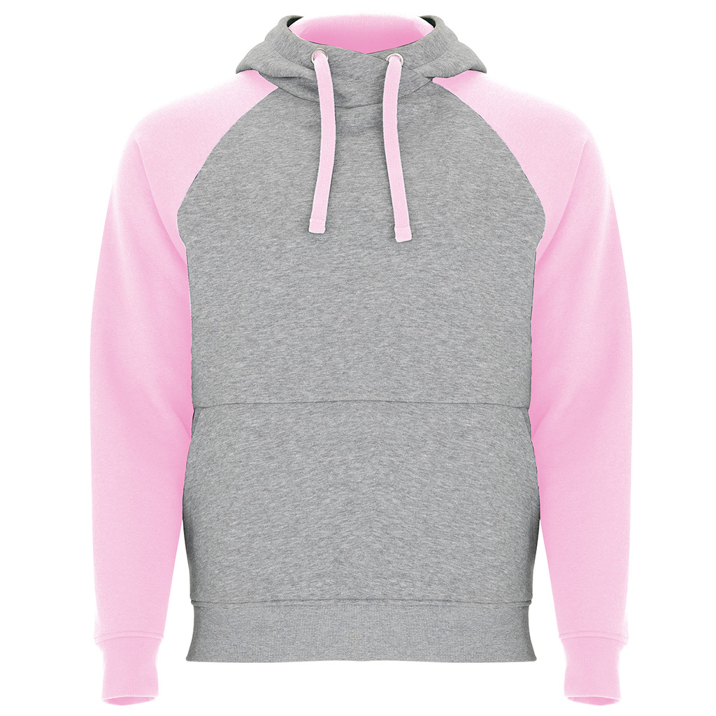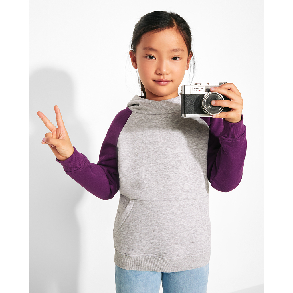 Stylová dětská/unisex mikina Badet kombinuje moderní design s maximálním pohodlím. Mikina má překřížený výstřih s kovovými kroužky na šňůrky a kontrastní vnitřní kapuci, která dodává výrazný vzhled a sportovní styl. Raglánové rukávy s kontrastním detailem a klokaní kapsa zajišťují praktičnost při nošení. Varianta v šedé barvě je melírovaná, což podtrhuje moderní vzhled.