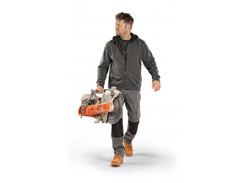 Pánská mikina na zip, pas a rukávy ukončeny pružnou manžetou, boční kapsy na zip, plastové zipy, reflexní tkanice. Finální silikonová úprava materiálu, která zajišťuje vyšší měkkost a pružnost, rozměrovou stálost a omezuje žmolkovatění.