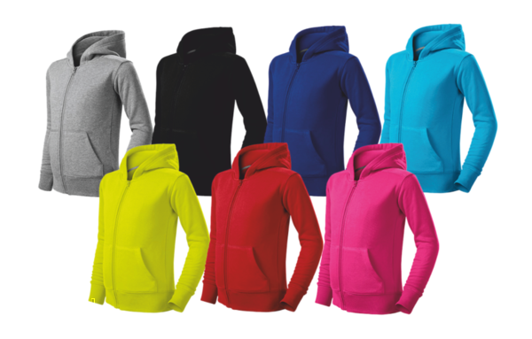 rovný střih s bočními švy, celopropínací kostěný zip, kapuce s podšívkou bez stahovací šňůrky