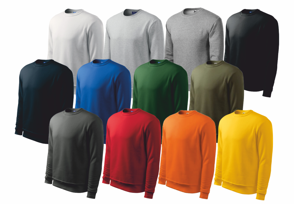 Barvy: bílá, světle šedý melír, tmavá břidlice, černá, námořní modrá, královská modrá, lahvově zelená a červená