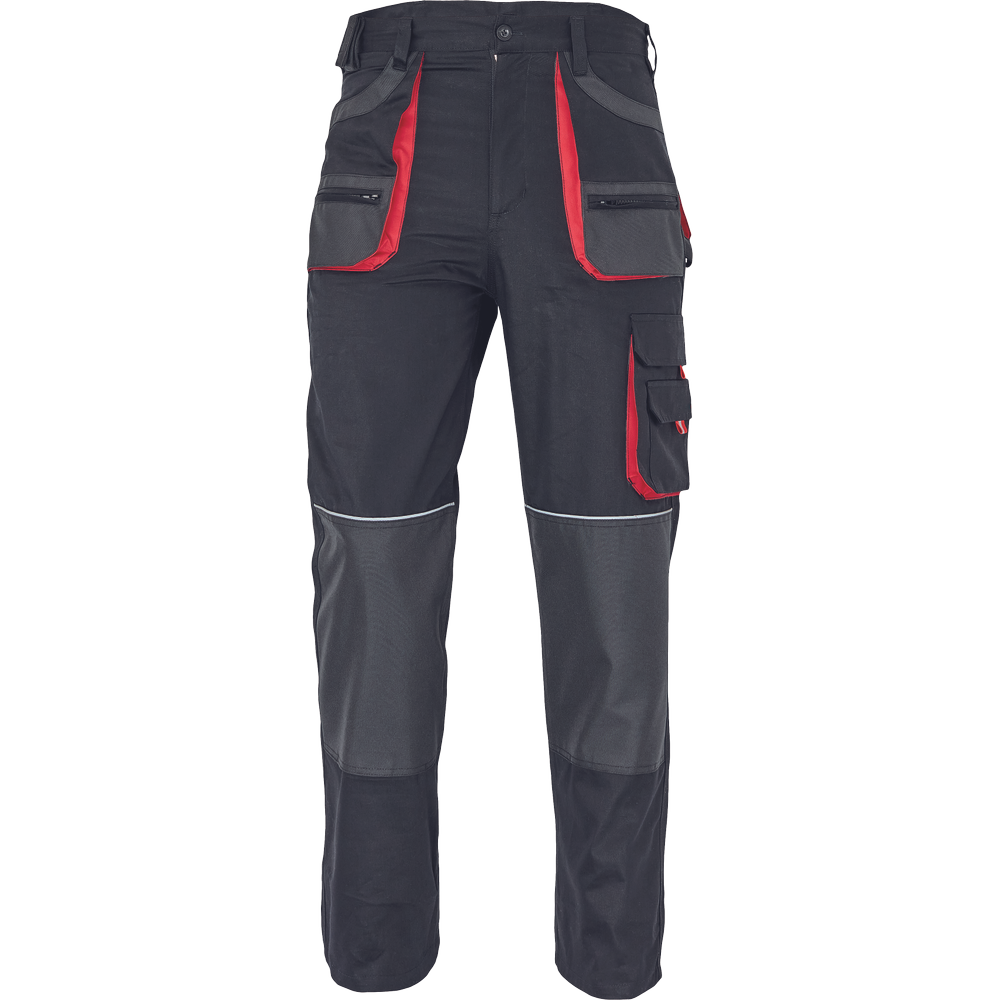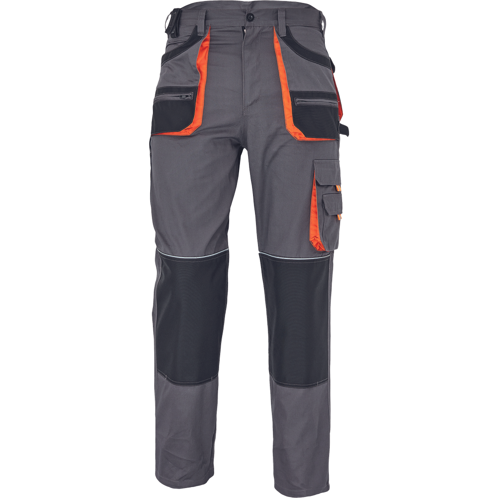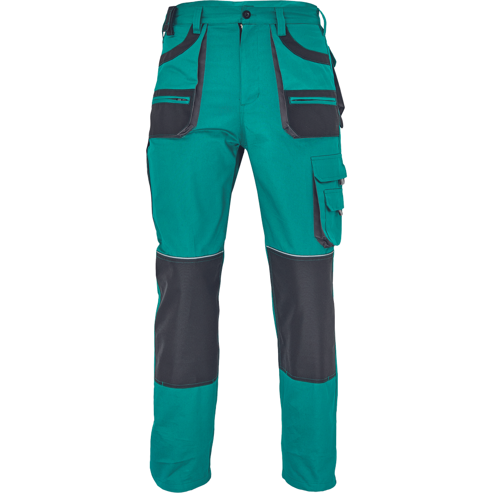 Pánské bavlněné pracovní kalhoty; 6 funkčních kapes; polyester Oxford zesílení v kolenních částech s možností vkládání ochranných nákoleníků.