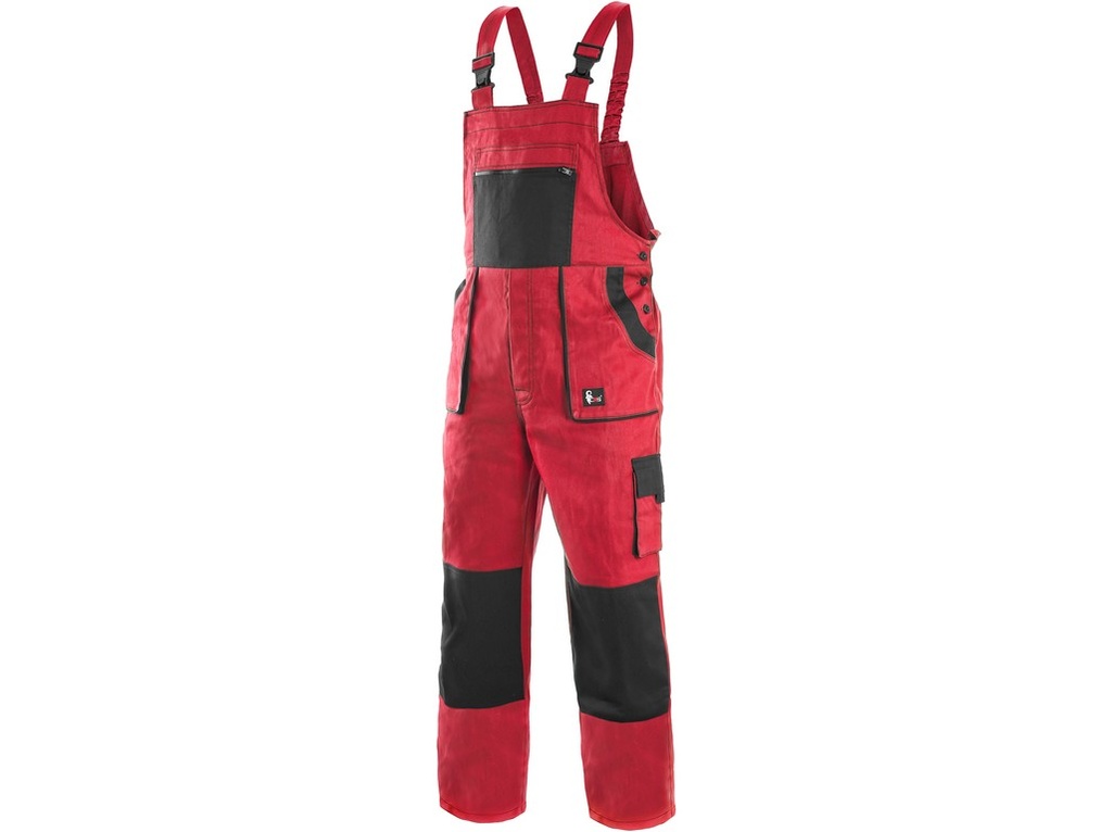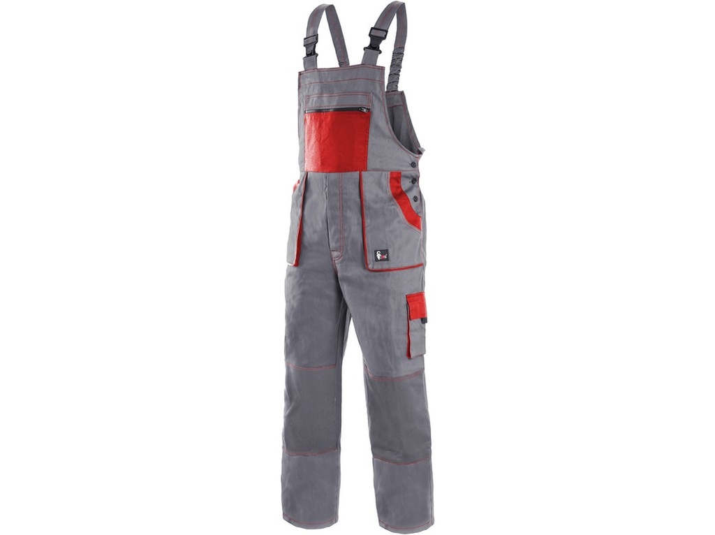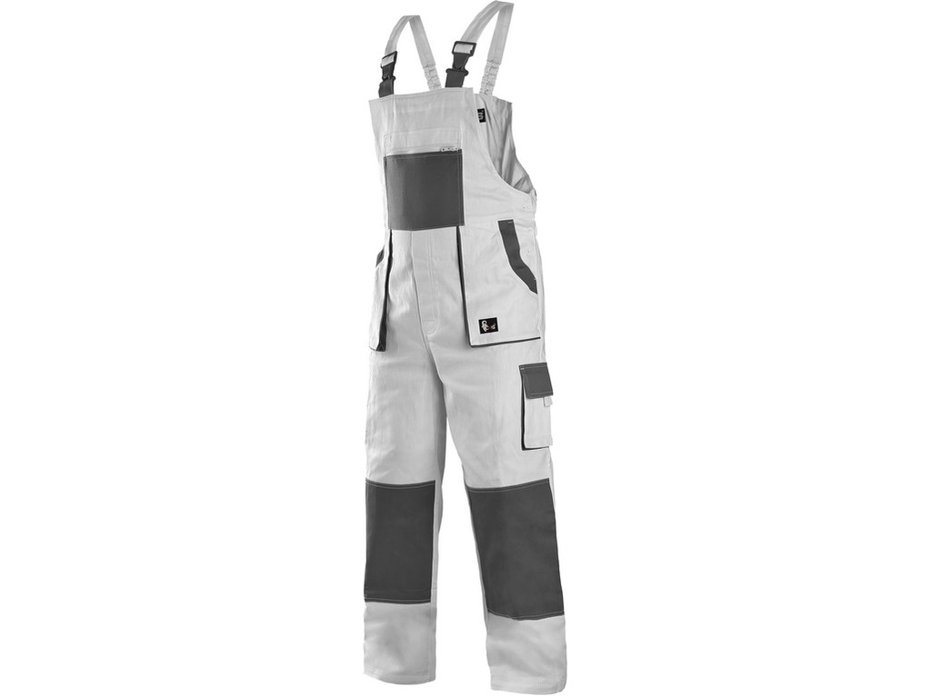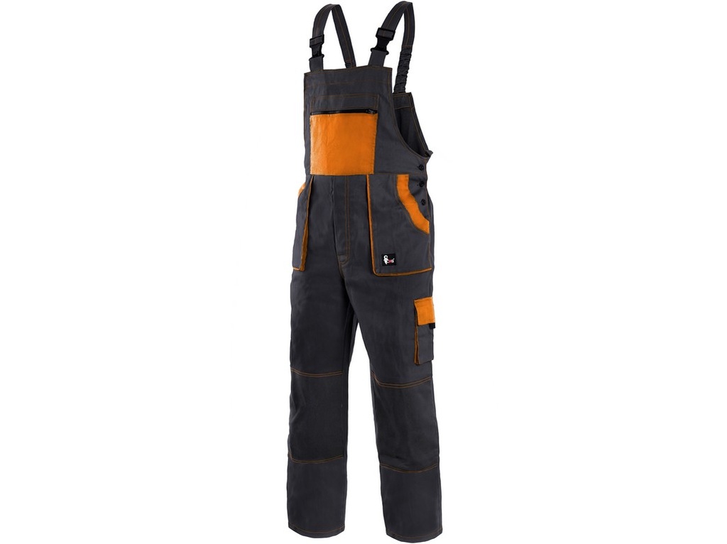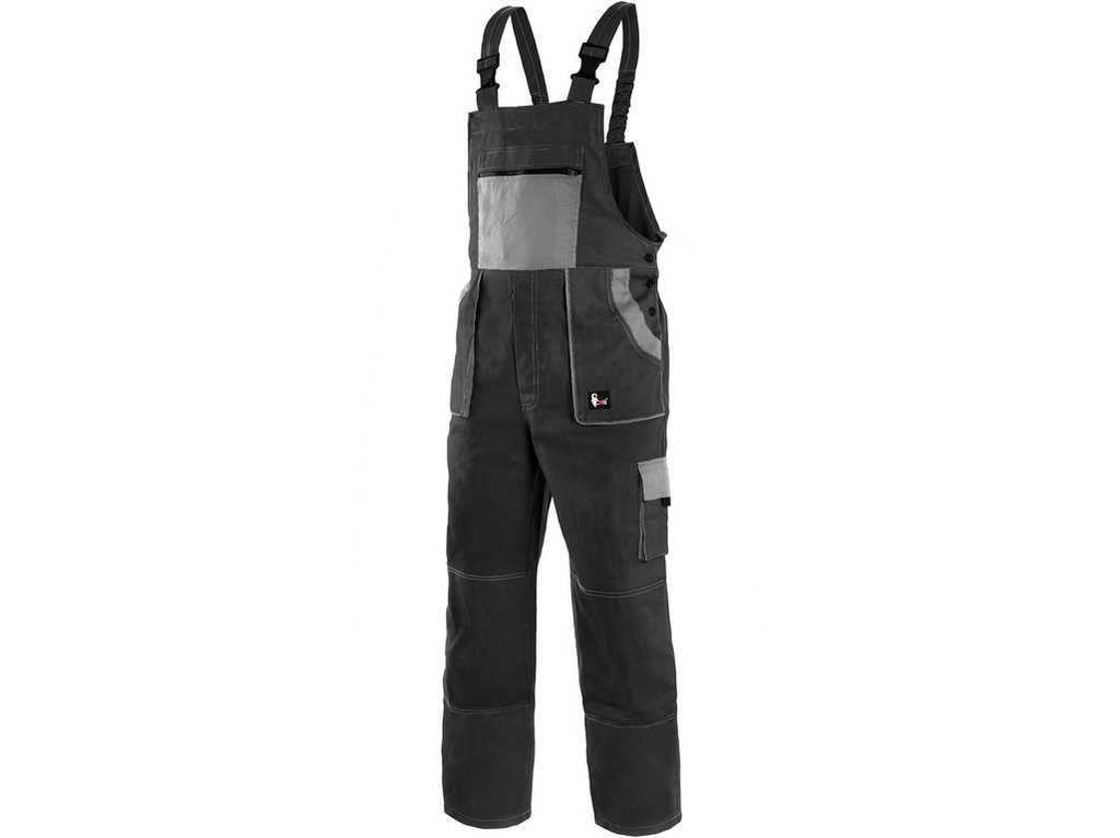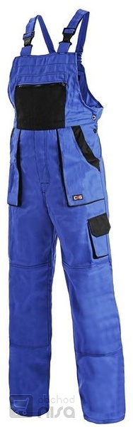Kalhoty s laclem LUX, pohodlné pracovní kalhoty s laclem, zdvojená látka a prošívání sedu, zajímavé střihové provedení kapes a laclu, zesílená kolena, dvě zadní kapsy.