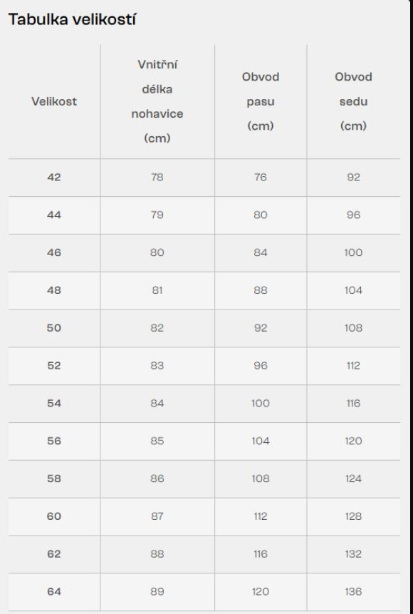 Velikostní tabulku naleznete v obrázcích produktu
