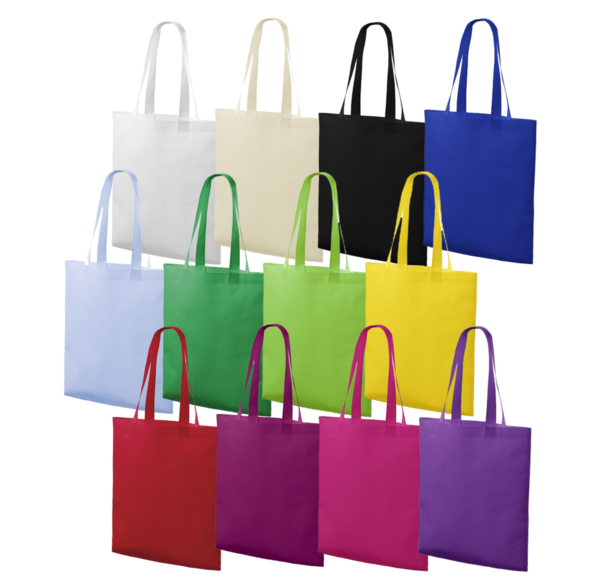 Malá taška z netkané textilie rozměrem ideální pro nákupy. Dostupná alternativa k igelitovým taškám. Chraňme společně přírodu. Křížové prošití popruhů pro vyšší odolnost.
