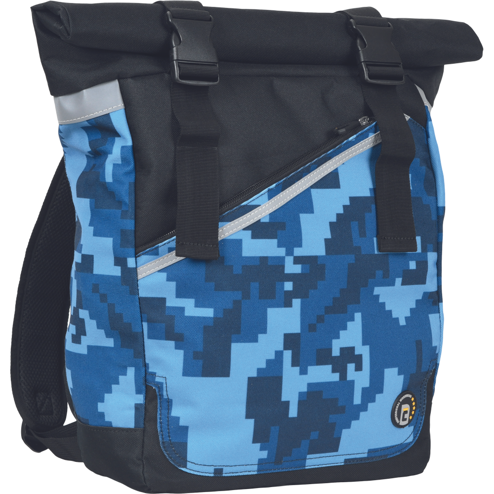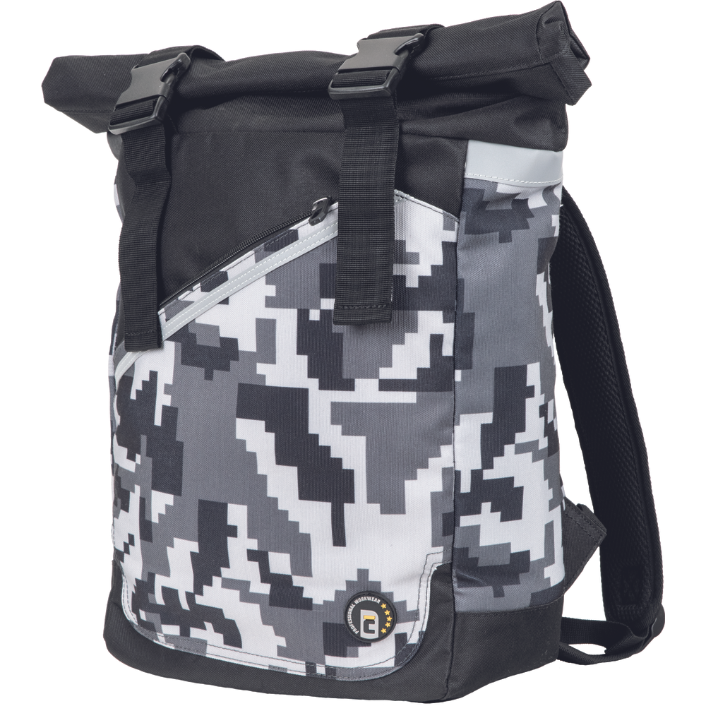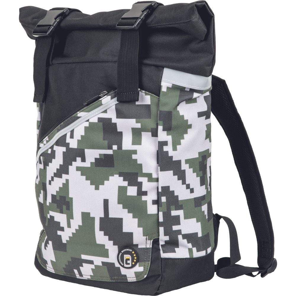 Prostorný jednokomorový batoh v módním maskáčovém vzoru s vnitřním odděleným organizér pro lap-top, mobilní telefon a peněženku. Vyztužená záda a ramenní popruhy, které lze zkrátit pomocí rolovacích spon.