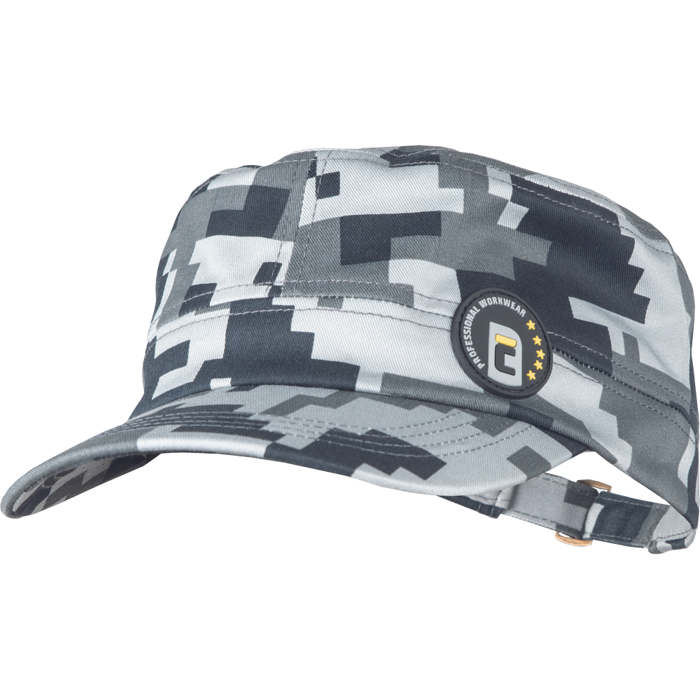 NEURUM CAMOUFLAGE čepice s kšiltem v módním maskáčovém vzoru, nastavitelná velikost pomocí zadní kovové spony.