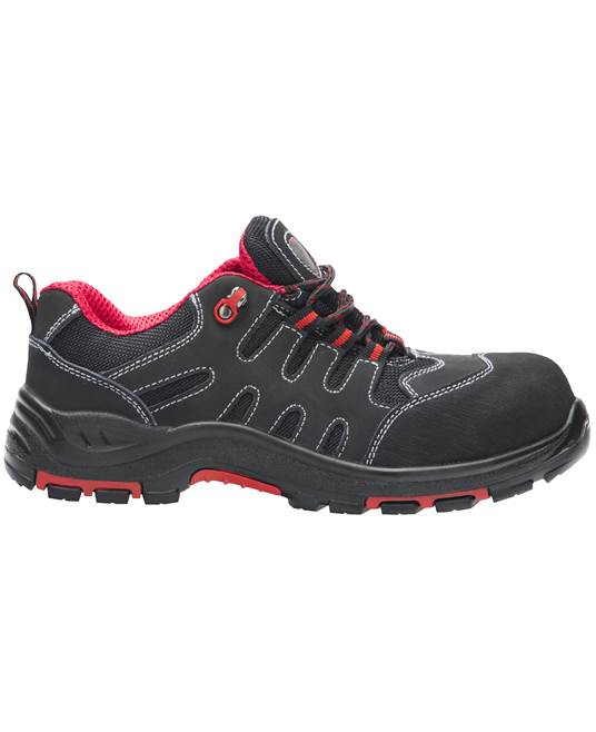 S kompozitovou špicí bota získává vysokou odolnost vůči okopu a poranění nohy. Kevlarová flexibilní stélka chrání proti propichu, pružná podešev vstřebává prudké nárazy při došlapu. Bota skvěle reaguje na přirozený pohyb nohy při chůzi. Tvarovaná podrážka předchází sklouznutí nebo špatnému nášlapu. Základní černá barva zajímavě kontrastuje s červenými prvky a obšitím. Obuv FORELOW S1P moderně doplní vaše pracovní nebo volnočasové oblečení a plně vyhoví běžným nárokům na pohyb v terénu i práci v dílně.