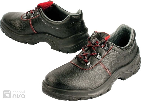Bezpečnostní polobotky s ocelovou tužinkou, antistatickou a protiskluzovou podrážkou odolnou pohonným hmotám, absorpcí energie v patě a svrškem z prodyšné kůže.