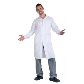 Pánský pracovní plášť je vyroben ze 100% bavlny se zapínáním ve předu s dlouhým rukávem a se třemi kapsami na předním díle.