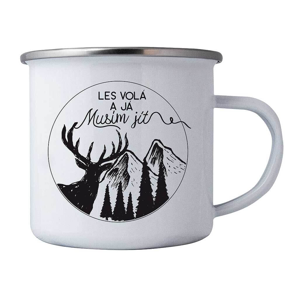 Dekorační plechový hrnek s potiskem pro myslivce – les volá a já musím jít